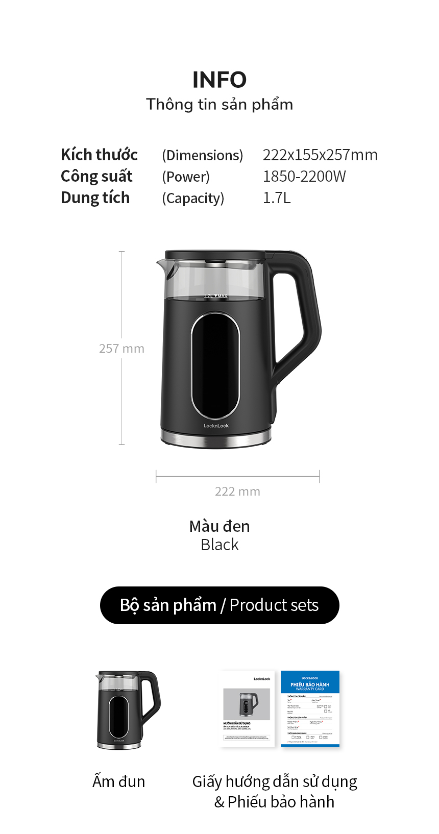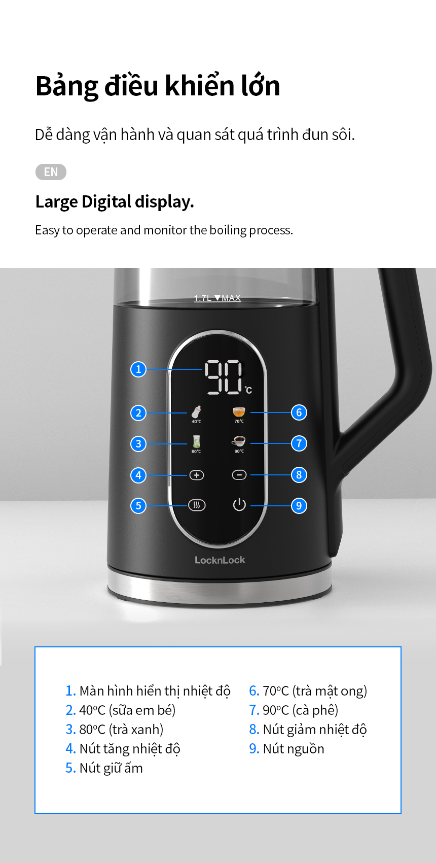 Ấm Đun Siêu Tốc LocknLock EJK286BLK 1.7L, Hàng Chính Hãng, 5 chế độ nhiệt, giữ ấm 2 giờ - JoyMall