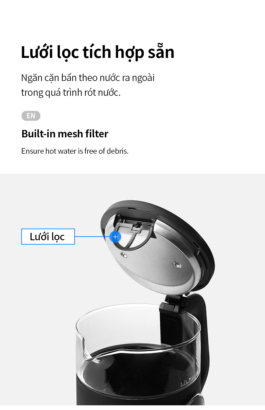 LƯỚI LỌC TÍCH HỢP SẴN: Ngăn cặn bẩn theo nước ra ngoài trong quá trình rót nước
