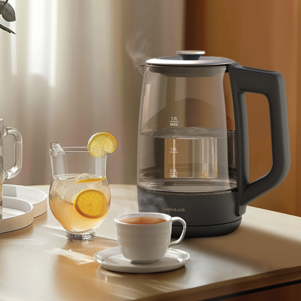 Ấm Đun Siêu Tốc Locknlock Smart Glow Glass Electric Kettle EJK276GRY 1.7L, Hàng Chính Hãng, 5 Mức Nhiệt - JoyMall