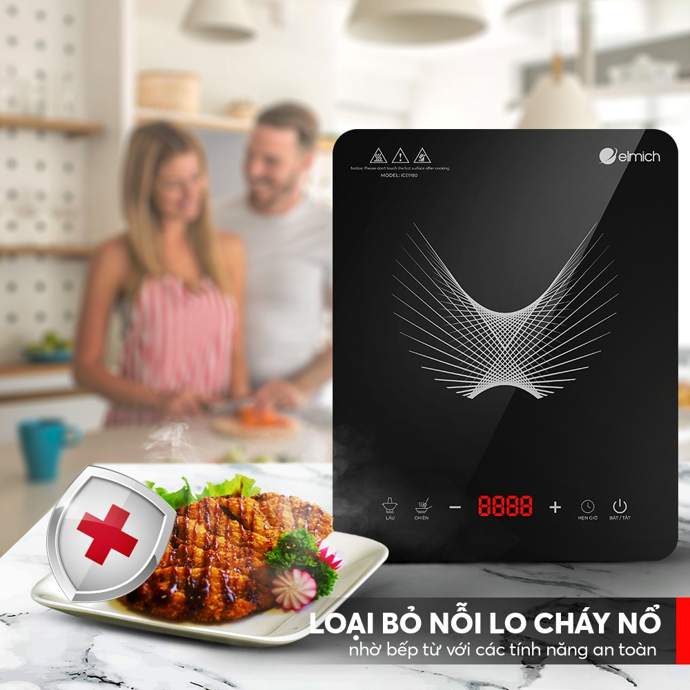 Bếp từ đơn Elmich ICE-9180, Hàng chính hãng, kính ceramic chịu lực, tự ngắt khi quá nhiệt - JoyMall