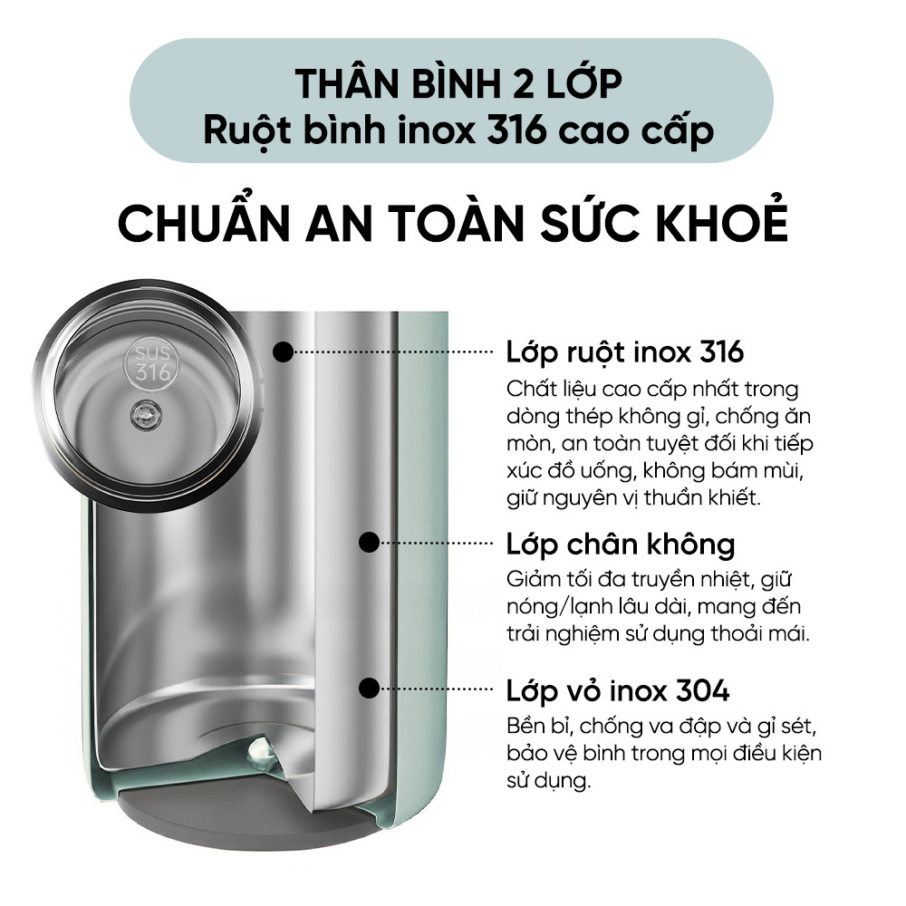 Bình Giữ Nhiệt Dual Sip 750ml Sunhouse KS-TU750DG, Inox 316 Cao Cấp, Hàng Chính Hãng - JoyMall