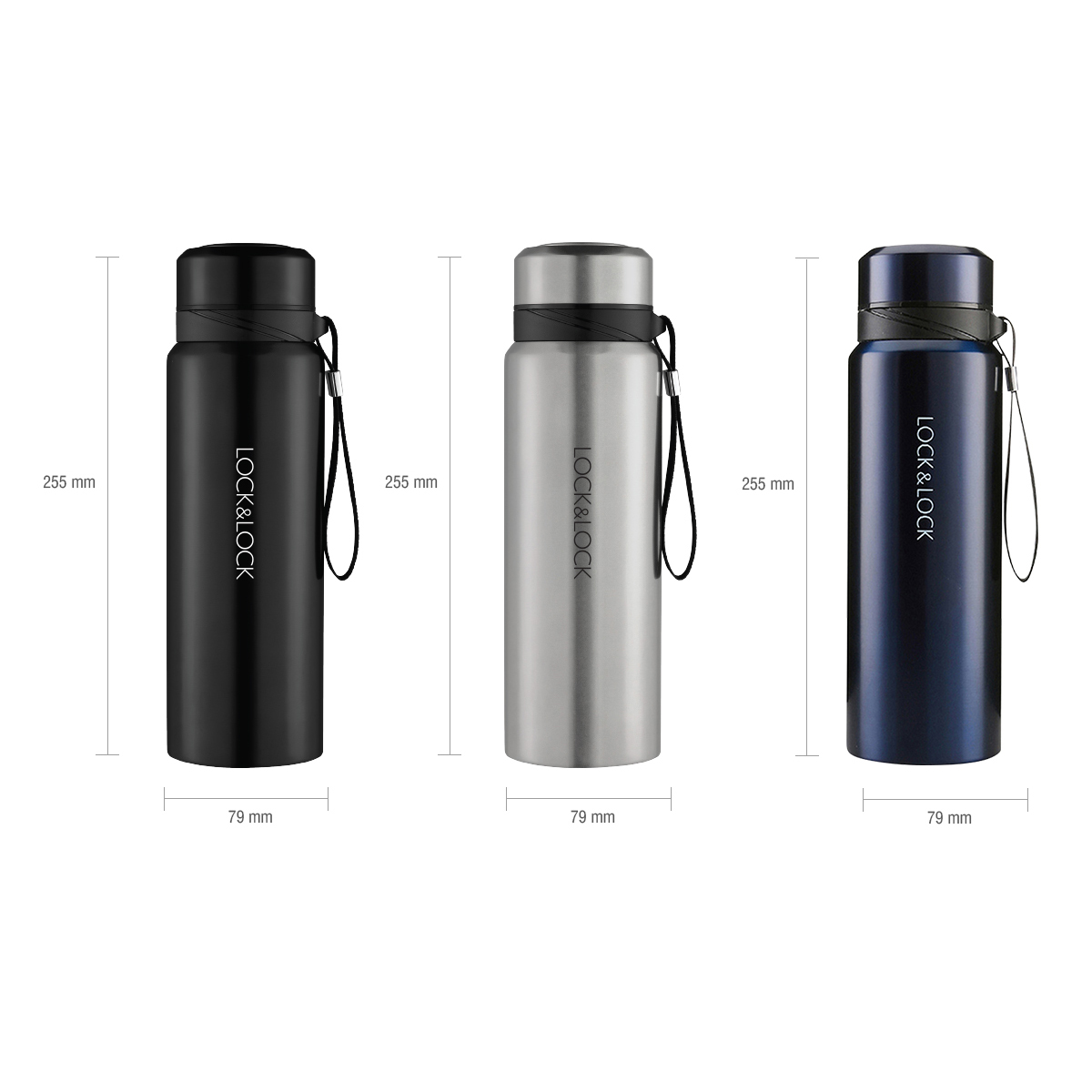 Bình giữ nhiệt Lock&Lock 800ml LHC6180 Vacuum Bottle - Hàng chính hãng, có khay lưới lọc trà, dây treo xách - JoyMall