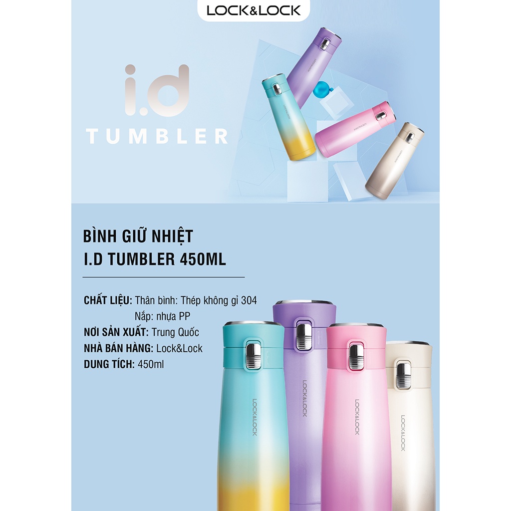 Bình giữ nhiệt Lock&Lock 450ml LHC3245 Holiday Sunset I.d Tumbler - Hàng chính hãng, mở nắp 1 chạm - JoyMall