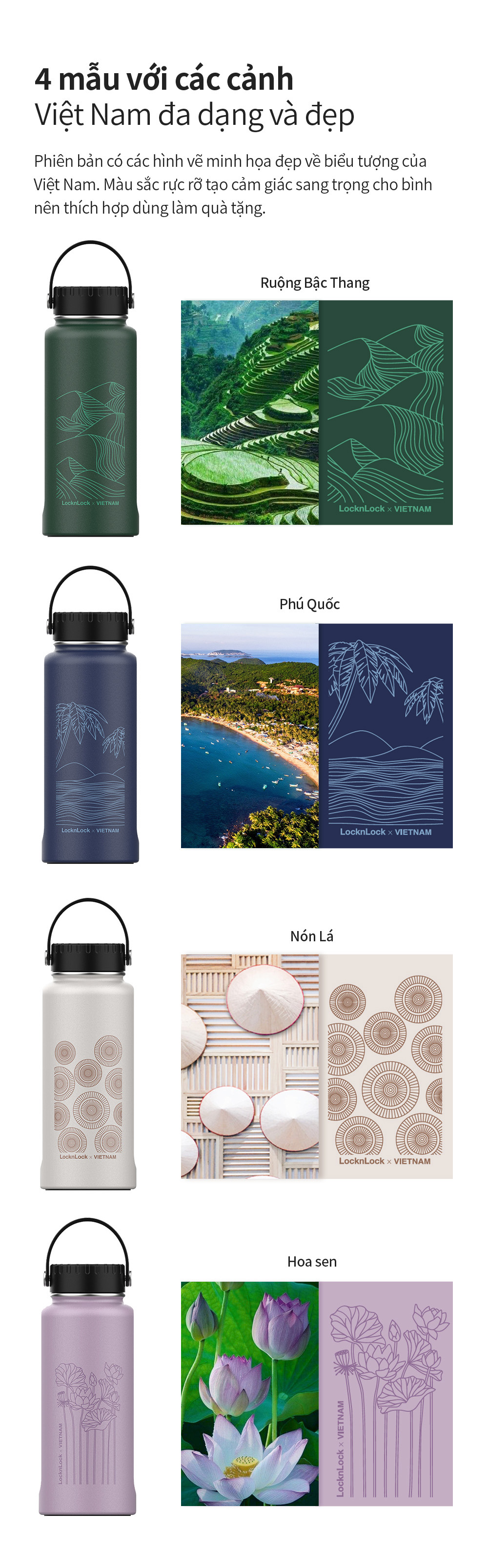 Màu sắc: có 6 màu tượng trưng cho các thành phố nổi tiếng trên thế giới và phiên bản đặc biệt Lock&Lock x Việt Nam có 4 màu tượng trưng cho các địa danh tại Việt Nam
