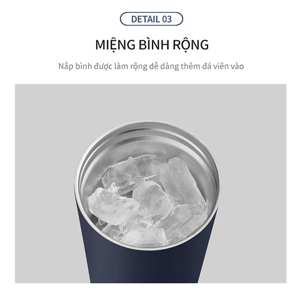 - Miệng bình rộng đủ để vệ sinh bên trong và thêm đá viên