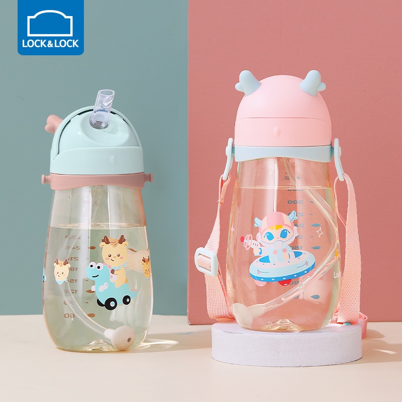 Bình nước nhựa LocknLock 450ml Deer Kids, Hàng chính hãng, kèm ống hút silicone, dây đeo, họa tiết xinh-JoyMall