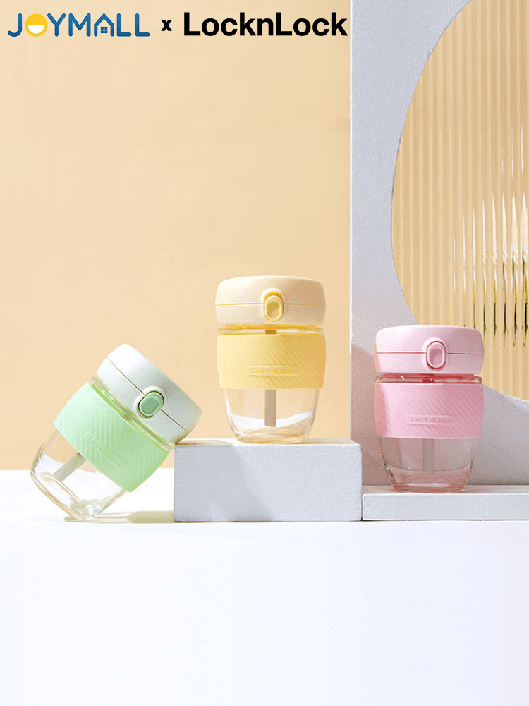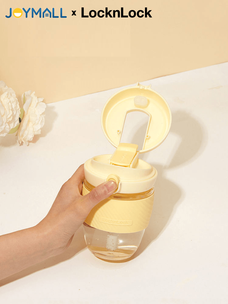 Bình nước thủy tinh bọc cách nhiệt 400ml LocknLock LLG968, Hàng chính hãng, có ống hút, mở 1 chạm - JoyMall
