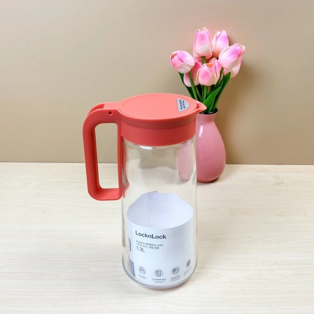 Bình Nước Thuỷ Tinh Có Tay Cầm LocknLock LLG619YRED 1.3L, Hàng Chính Hãng - JoyMall