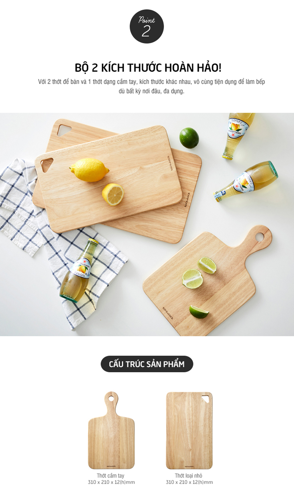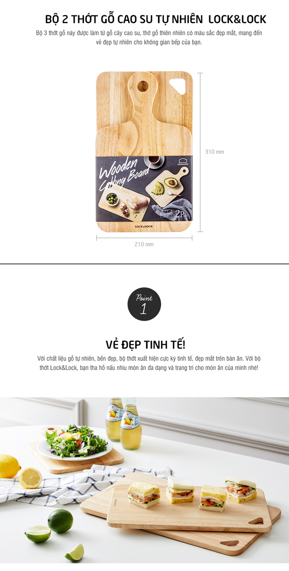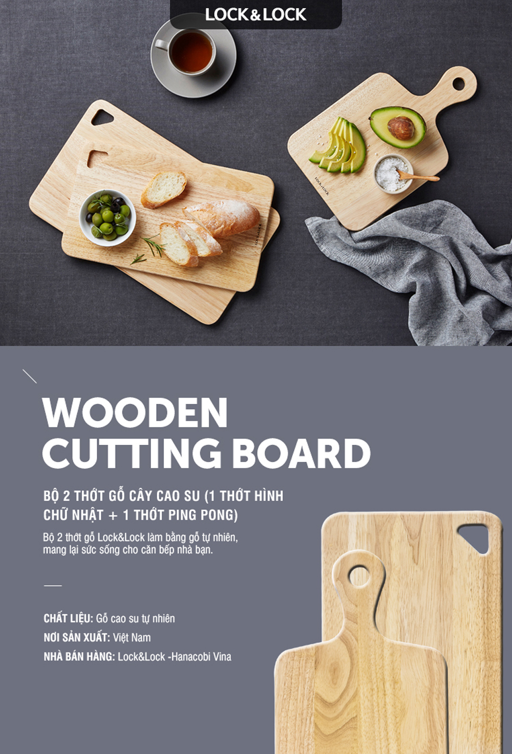 Bộ 2 Thớt Gỗ Cây Cao Su Lock&Lock LWC001S2 - Hàng Chính Hãng, Bề Mặt Cứng, Không Có Vết Nứt Li Ti - JoyMall