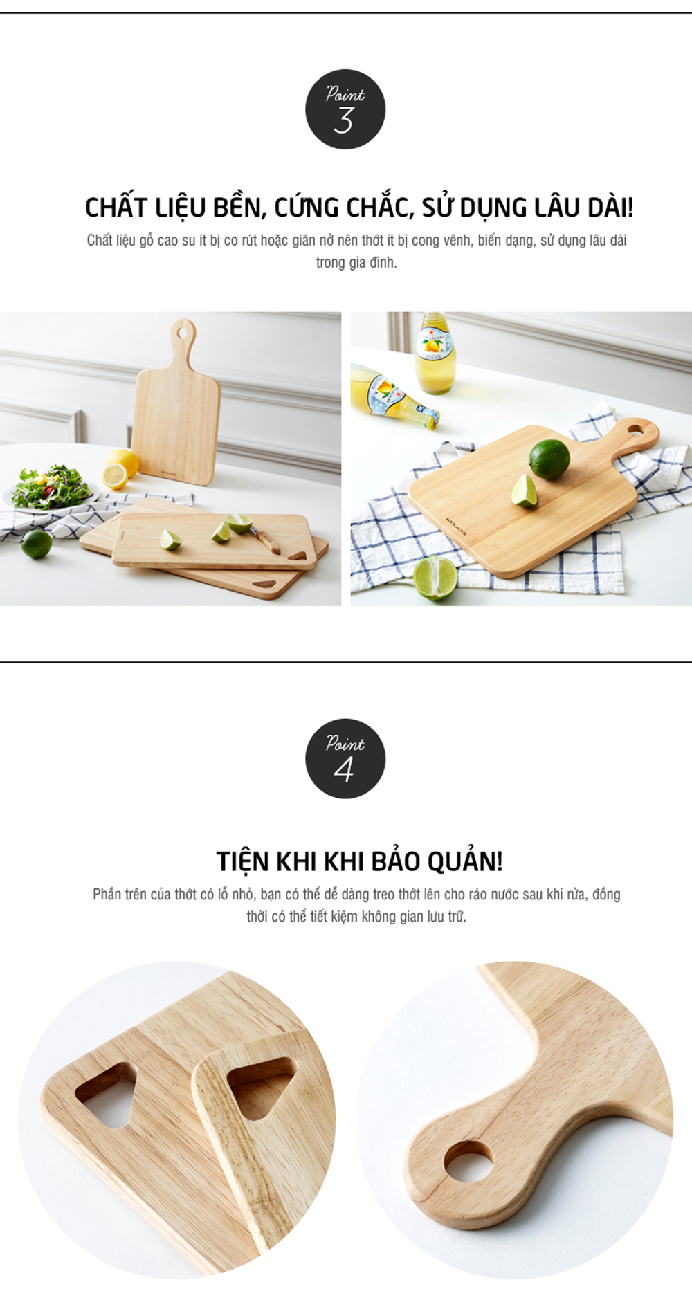 - Ngoài ra sản phẩm còn có nhiều ưu điểm vượt trội so với thớt nhựa và thớt thủy tinh. Nếu các loại thớt khác thường chứa vi khuẩn từ các vết cứa, ảnh hưởng đến sức khỏe thì thớt gỗ sẽ giúp bạn khắc phục nhược điểm này.