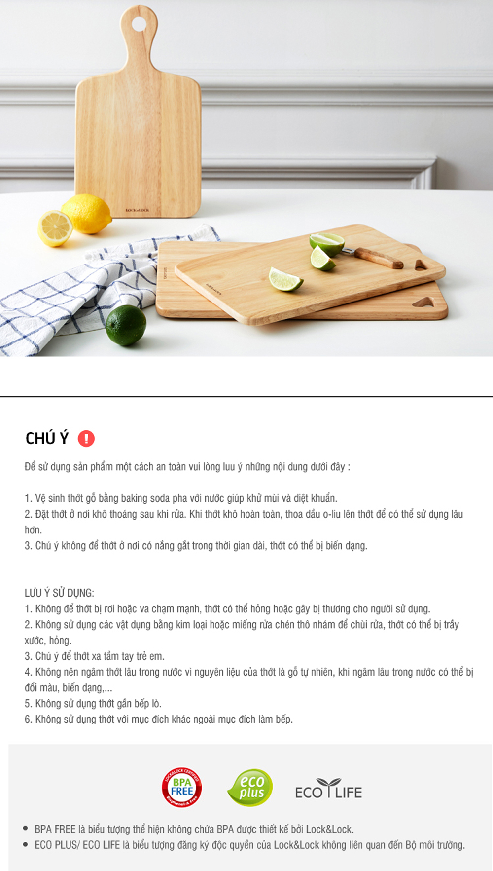 - Thớt gỗ đạt tiêu chuẩn, bảo đảm an toàn, không sử dụng hóa chất độc hại trong quá trình sản xuất.