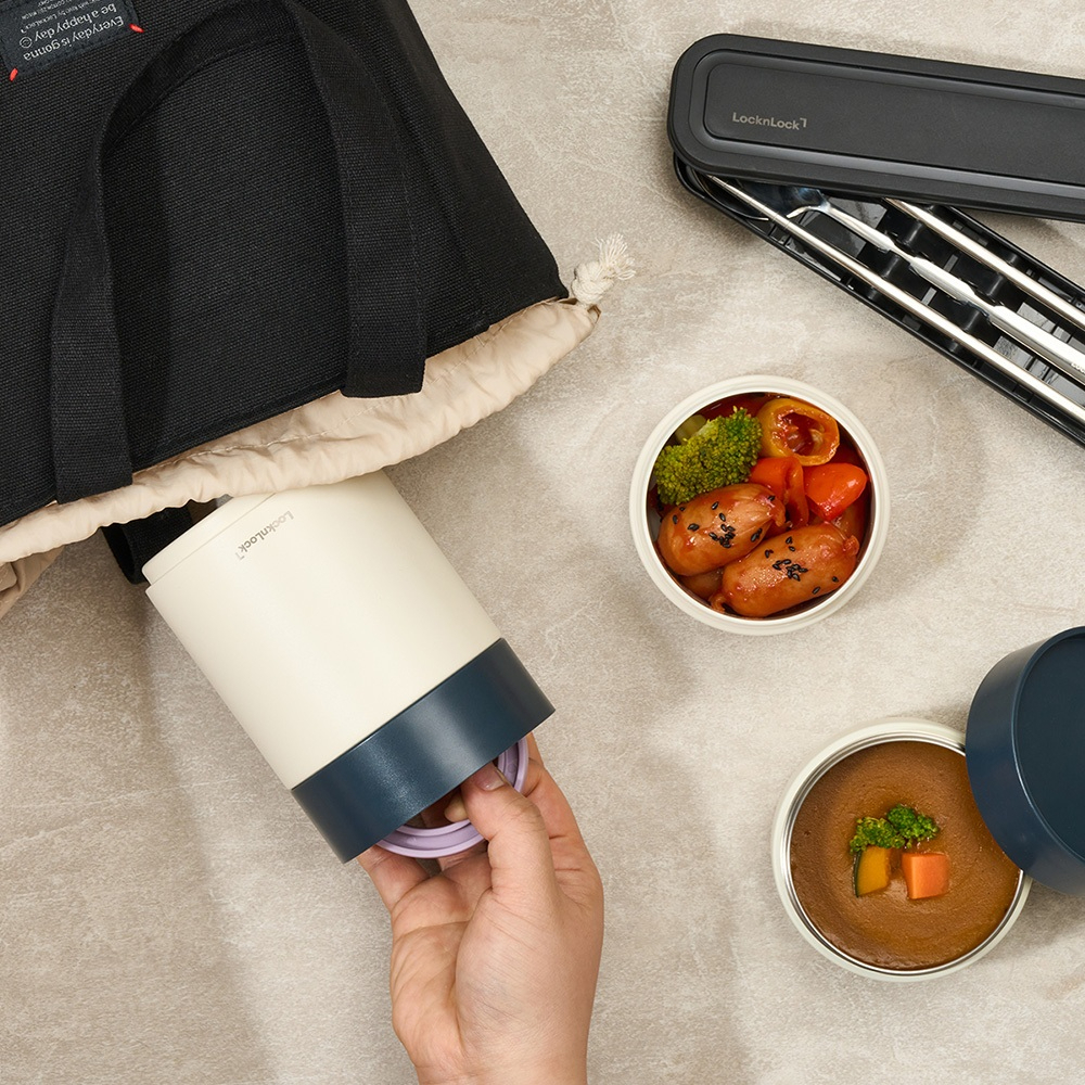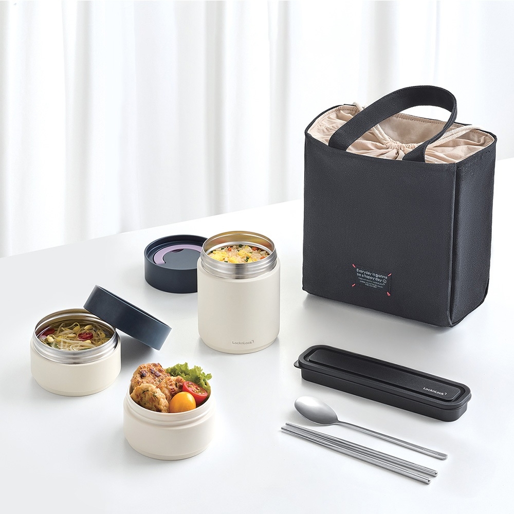 Bộ 3 Hộp Cơm Giữ Nhiệt LocknLock LHC8014IVY 1020ml, Hàng Chính Hãng, Kèm Muỗng Đũa Và Túi - JoyMall