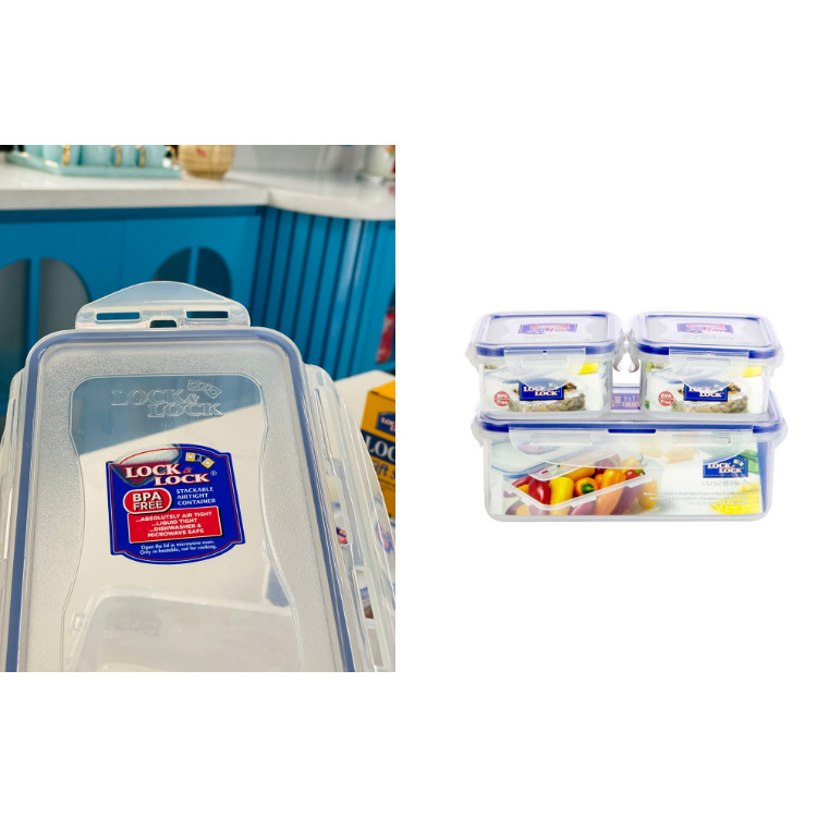 ⭐️Hàng chính hãng - Thương hiệu LocknLockThông Tin Sản Phẩm:- Model: HPL817R03 -Bộ 3 hộp nhựa bảo quản thực phẩm LocknLock- Bộ sản phẩm gồm 3 hộp1 hộp 1L có kích thước: 20,5*13,4*6,9cm2 hộp 350ml có kích thước: 13,5*10,2*5,2cm- Chất liệu: Nhựa, silicone- Chịu được nhiệt độ từ -20 đến 100 độ C- Thương hiệu: LocknLock- Sản xuất tại: Việt Nam- Bộ hộp bảo quản thực phẩm LocknLock HPL817R03 được làm từ nhựa PP, đã thông qua kiểm định theo tiêu chuẩn FDA của Mỹ và SGS của Đức về an toàn vệ sinh thực phẩm, không chứa BPA, không màu, không mùi, không tiết ra các chất có hại trong quá trình sử dụng, đảm bảo an toàn cho sức khỏe người dùng.- Sử dụng để bảo quản thực phẩm tươi ngon lâu hơn- Nắp đậy kín khít với dây silicone cùng 4 khớp khóa- Sản phẩm thiết kế thông minh, tiện dụng với phần nắp gắn chặt vào thành hộp nhờ dây silicone 2 lớp cùng 4 khóa ở 4 cạnh, giúp thức ăn không bị tràn, đổ ra ngoài khi di chuyển.#lock #hopbaoquan #hopnhua #hpl817r03 #lock #locknlock #hop #baoquan #hopbaoquanthucpham