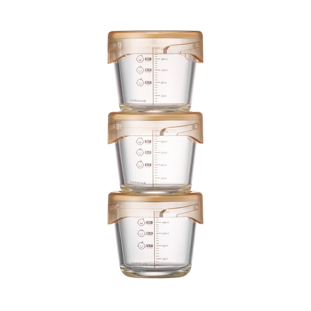 Bộ 3 hộp thủy tinh đựng thức ăn dặm cho bé Lock&Lock LLG542S3IVY - Hàng chính hãng chịu nhiệt tốt có vạch chia - JoyMall