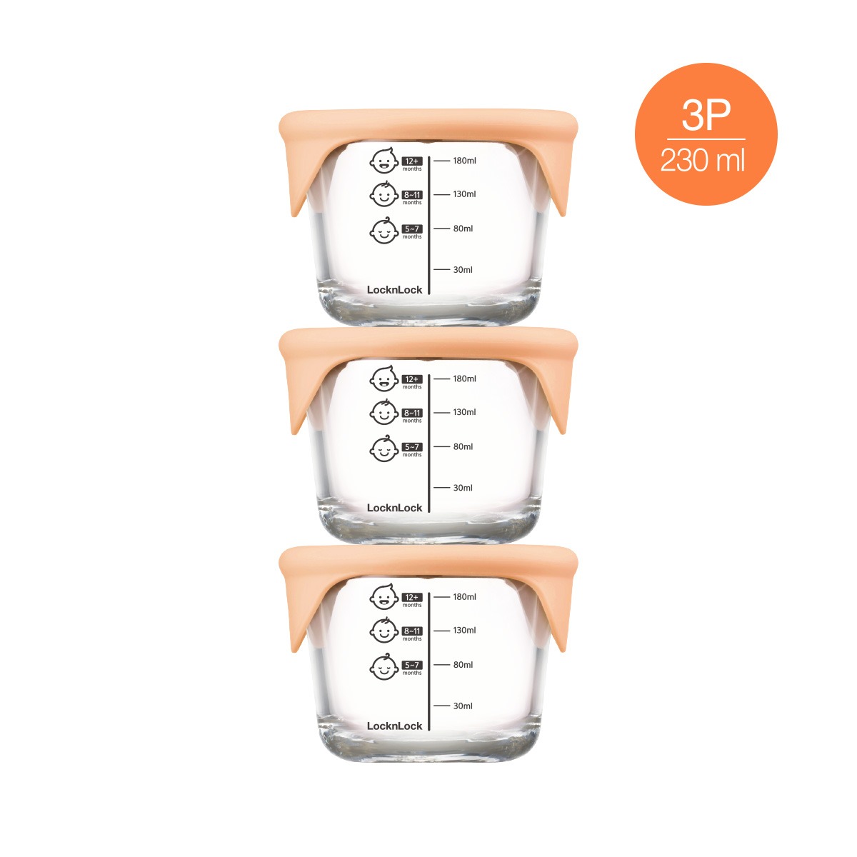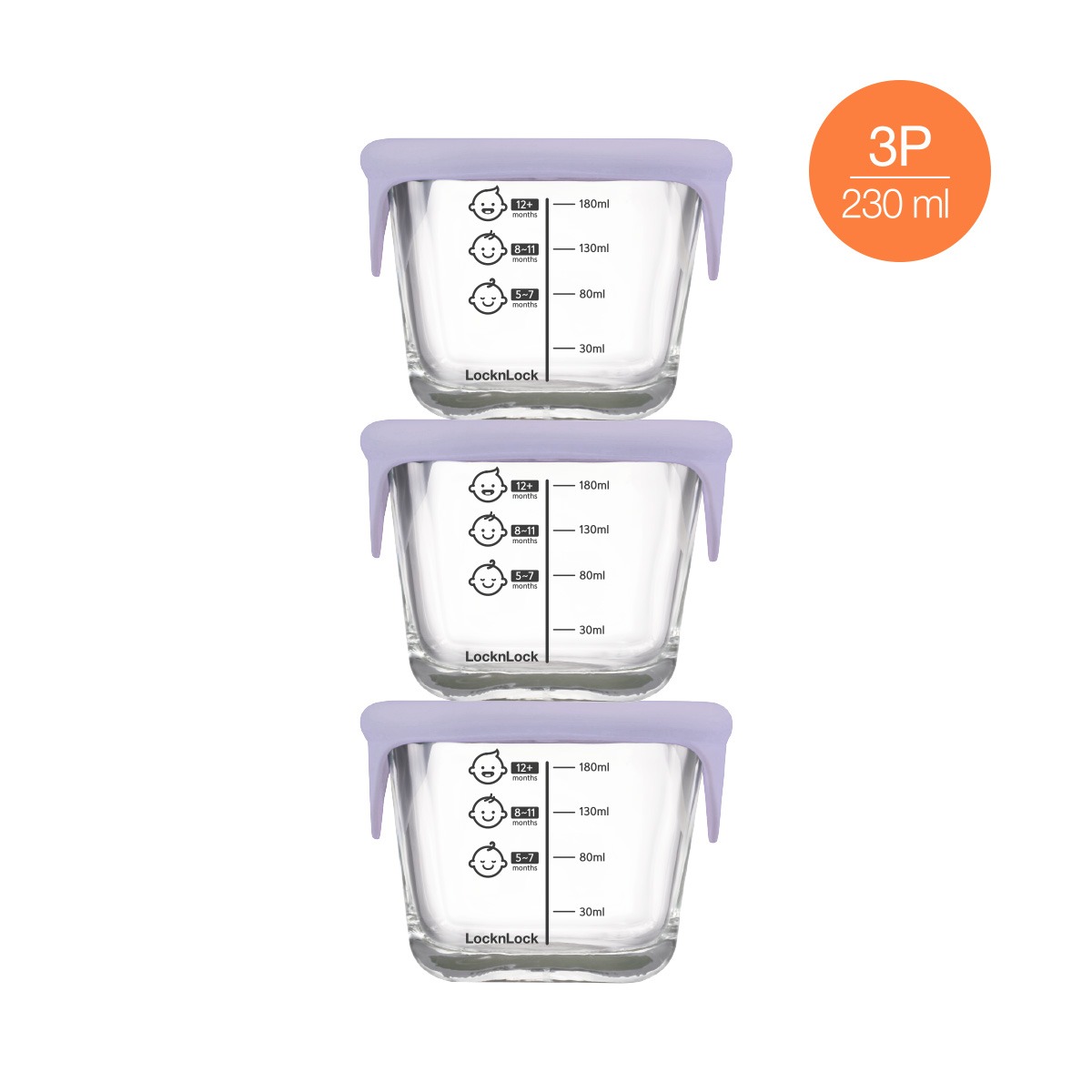 Bộ 3 Hộp Thủy Tinh Đựng Thức Ăn Dặm Cho Bé Lock&Lock LLG508S3 230ml X 3 Hộp, Hàng Chính Hãng, Dùng Được Trong Tủ Lạnh, Lò Vi Sóng, Máy Rửa Bát - JoyMall