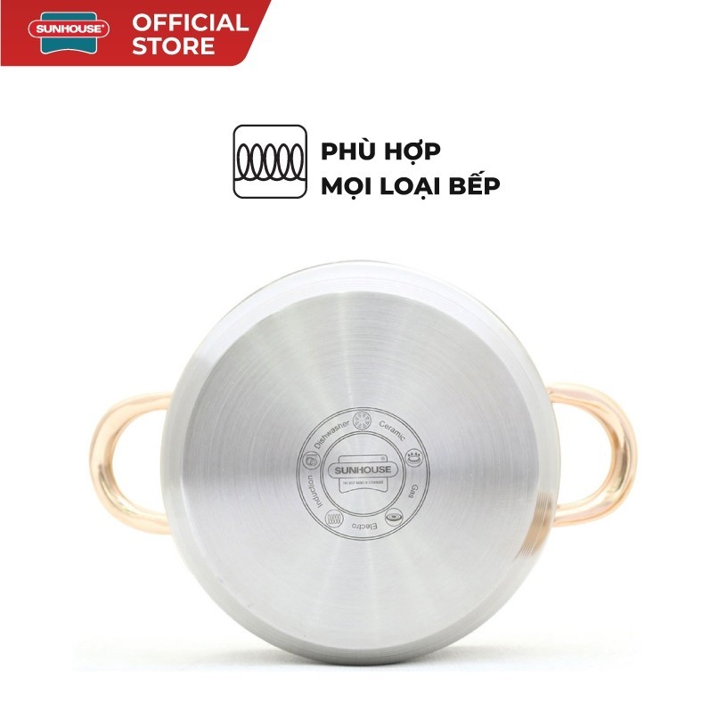 Bộ 3 nồi Inox 5 Đáy Sunhouse SH781 16cm-20cm-24cm, Hàng Chính Hãng, Đáy Từ Dùng Mọi Bếp - JoyMall1.Bộ nồi được cấu tạo từ inox 201 (không phải 304 nên sau quá trình dùng sẽ không được sáng bóng như inox 304).2. Quai cầm : Bộ này khi nấu treên bếp gas quai sẽ có thể bị nóng do hơi gas bốc lên , khách hàng nhà có nấu bếp gas lưu ý cho shop trước khi mua hàng ạ.Bộ nồi inox 5 đáy SUNHOUSE SH781MÃ SẢN PHẨM: SH781ĐẶC ĐIỂM NỔI BẬT:• 5 lớp đáy tỏa nhiệt đều, giữ nhiệt lâu, hạn chế cháy khét• Chất liệu inox an toàn sức khỏe• Sử dụng trên mọi loại bếp: bếp gas, bếp từ, bếp hồng ngoại,...• 3 kích cỡ, đáp ứng tối đa nhu cầu nấu nướng• Đáy từ, sử dụng được trên mọi loại bếpTỔNG QUANBộ nồi inox 5 đáy SUNHOUSE SH781 được làm bằng chất liệu inox 201 cao cấp, kiểu dáng sang trọng, quai núm mạ vàng tinh tế, là điểm nhấn nổi bật cho căn bếp hiện đại của bạn. Bộ sản phẩm gồm 03 nồi với đường kính 16 - 20 - 24cm đáp ứng tốt nhu cầu nấu nướng hàng ngày tại gia đình. THIẾT KẾThân nồi được làm bằng inox cao cấpChất liệu inox cao cấp giúp cho bộ nồi SH781 sáng bóng, dễ dàng lau chùi, vệ sinh. Kiểu dáng của bộ nồi sang trọng, tạo nên sự sang trọng cho căn bếp của bạn.Vung kính cường lực trong suốtVung kính cường lựcBộ nồi inox 5 đáy SUNHOUSE SH781 được trang bị vung kính cường lực, cùng núm mạ vàng sang trọng, siêu bền, chịu lực tốt giúp bạn thuận tiện hơn khi cần quan sát thực phẩm trong khi đun nấu. Quai inox, mạ vàng sang trọngVới quai núm được chế tạo từ inox, mạ vàng cao cấp, bộ nồi inox SUNHOUSE SH781 càng thêm sang trọng, nổi bật. Đặc biệt, quai nồi được thiết kế to bản, tán đinh chắc chắn, cách nhiệt tốt nên bạn rất dễ cầm và di chuyển trong quá trình sử dụng. CÔNG NĂNGBền đẹp, an toàn với sức khỏeVới ưu điểm của chất liệu inox cao cấp là không bị oxy hoá, bộ nồi có độ bền vượt trội, không han gỉ, không bị oxy hóa nên rất an toàn cho sức khoẻ. Bạn hoàn toàn yên tâm sử dụng bộ nồi SUNHOUSE SH781 lâu dài để chế biến thật nhiều món ăn ngon cho gia đình. Đáy nồi tỏa nhiệt đều, giữ nhiệt tốtBộ nồi có cấu tạo đáy 5 lớp dày dặn, truyền nhiệt nhanh, tỏa nhiệt đều và giữ nhiệt tốt nên rất tiết kiệm nhiên liệu cung như thời gian nấu nướng. Đặc biệt, sản phẩm hạn chế cháy khét thực phẩm giúp bạn nấu nướng thuận tiện hơn. Ngoài ra, đáy nồi có các vòng tròn đồng tâm nên không bị trơn trượt trong quá trình nấu nướng. Đa dạng kích cỡ, sử dụng trên mọi loại bếpBộ nồi inox 5 đáy SUNHOUSE SH781 sử dụng được với mọi loại bếp, kể cả bếp từ. Bộ sản phẩm gồm 3 nồi với đường kính 16cm - 20cm - 24cm phù hợp với nhu cầu nấu nướng của mọi gia đình. Nồi nhỏ 16cm thích hợp để luộc trứng, kho thịt, nồi cỡ trung 20cm để nấu canh cho 2-4 người và nồi lớn 24cm có thể luộc gà, nấu canh hoặc lẩu cho 3-5 người.