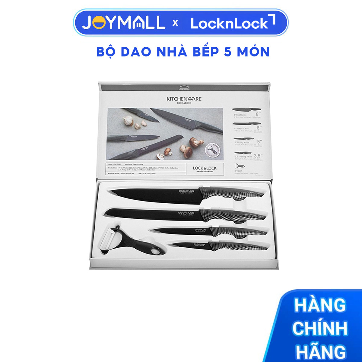 Bộ dao nhà bếp 5 món Lock&Lock COOKPLUS CKK101S5BLK - Hàng chính hãng lưỡi dao bọc sứ, có hộp sang trọng - JoyMall