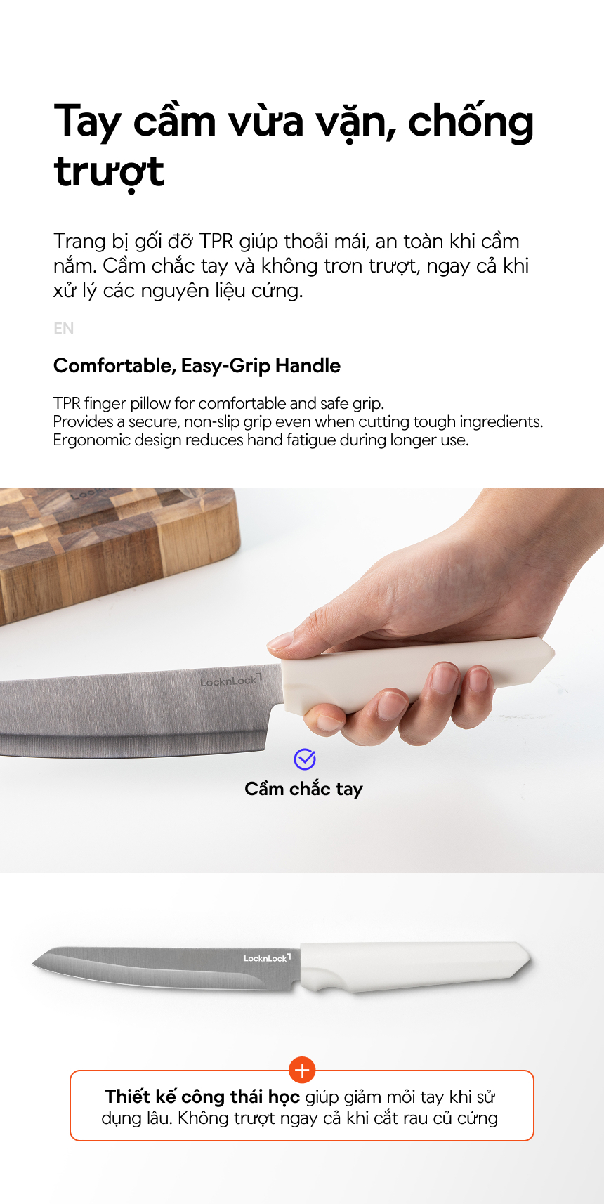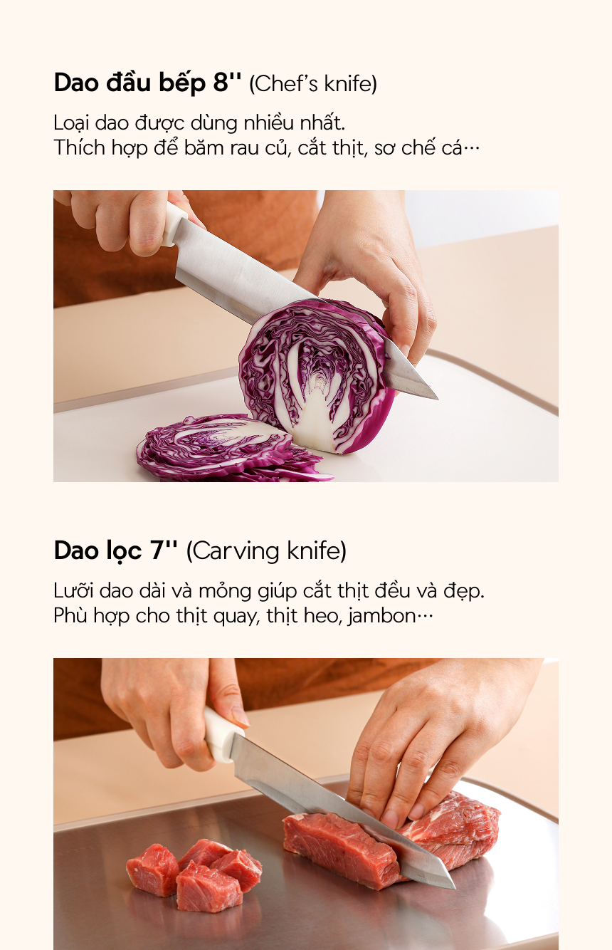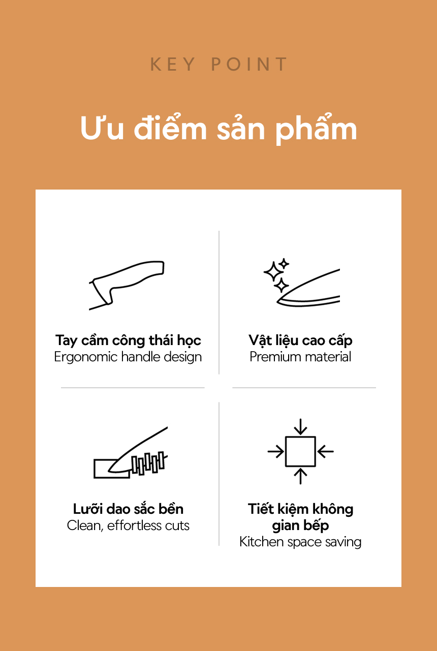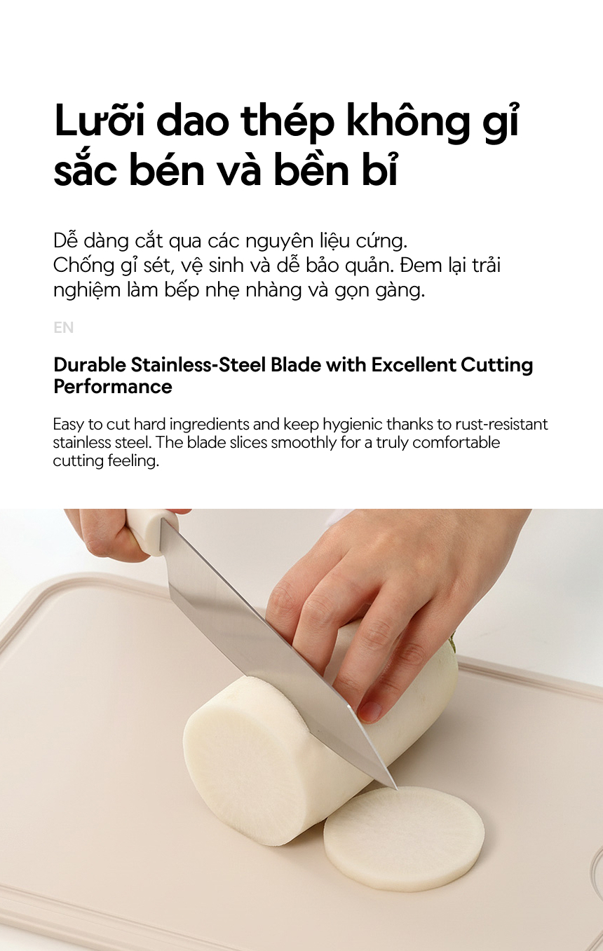- LƯỠI DAO SẮC BÉN: Đem lại trải nghiệm làm bếp nhẹ nhàng và gọn gàng.
