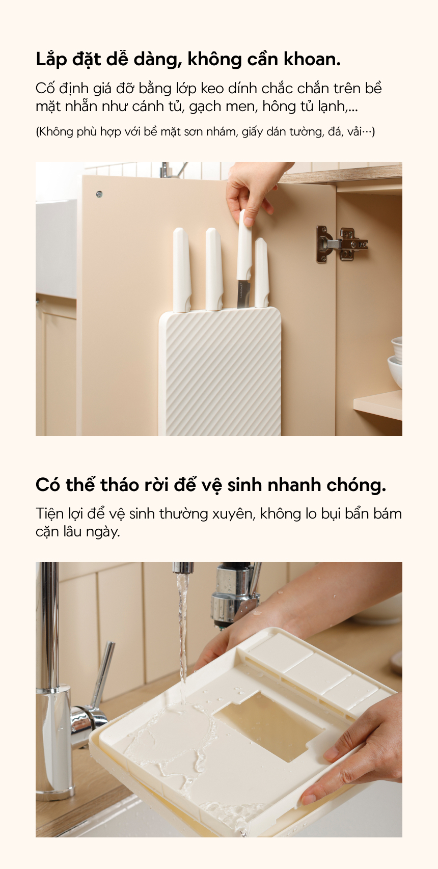 - THIẾT KẾ THÁO RỜI: Dễ dàng tháo giá đỡ để vệ sinh bất cứ lúc nào, tiện lợi và sạch sẽ.