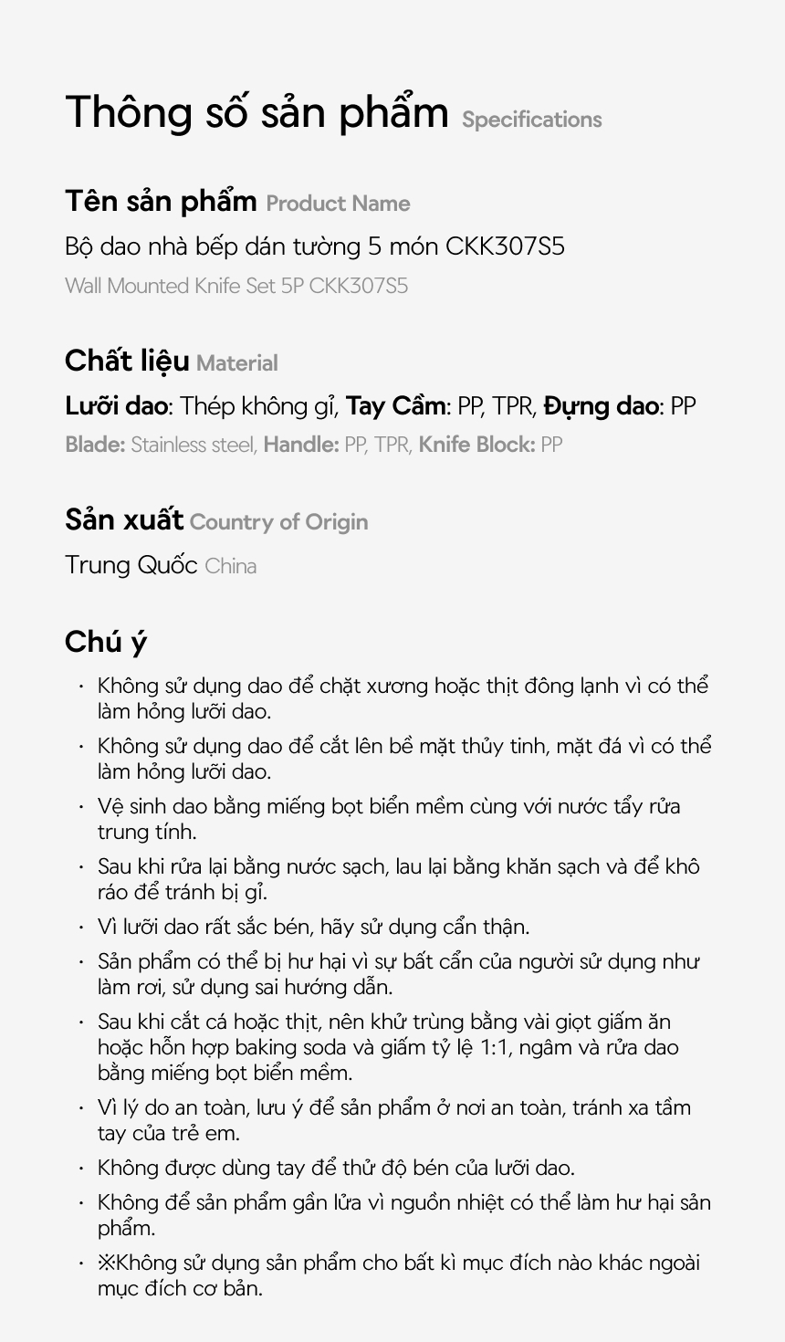 - Vì lưỡi dao rất sắc bén, hãy sử dụng cẩn thận.