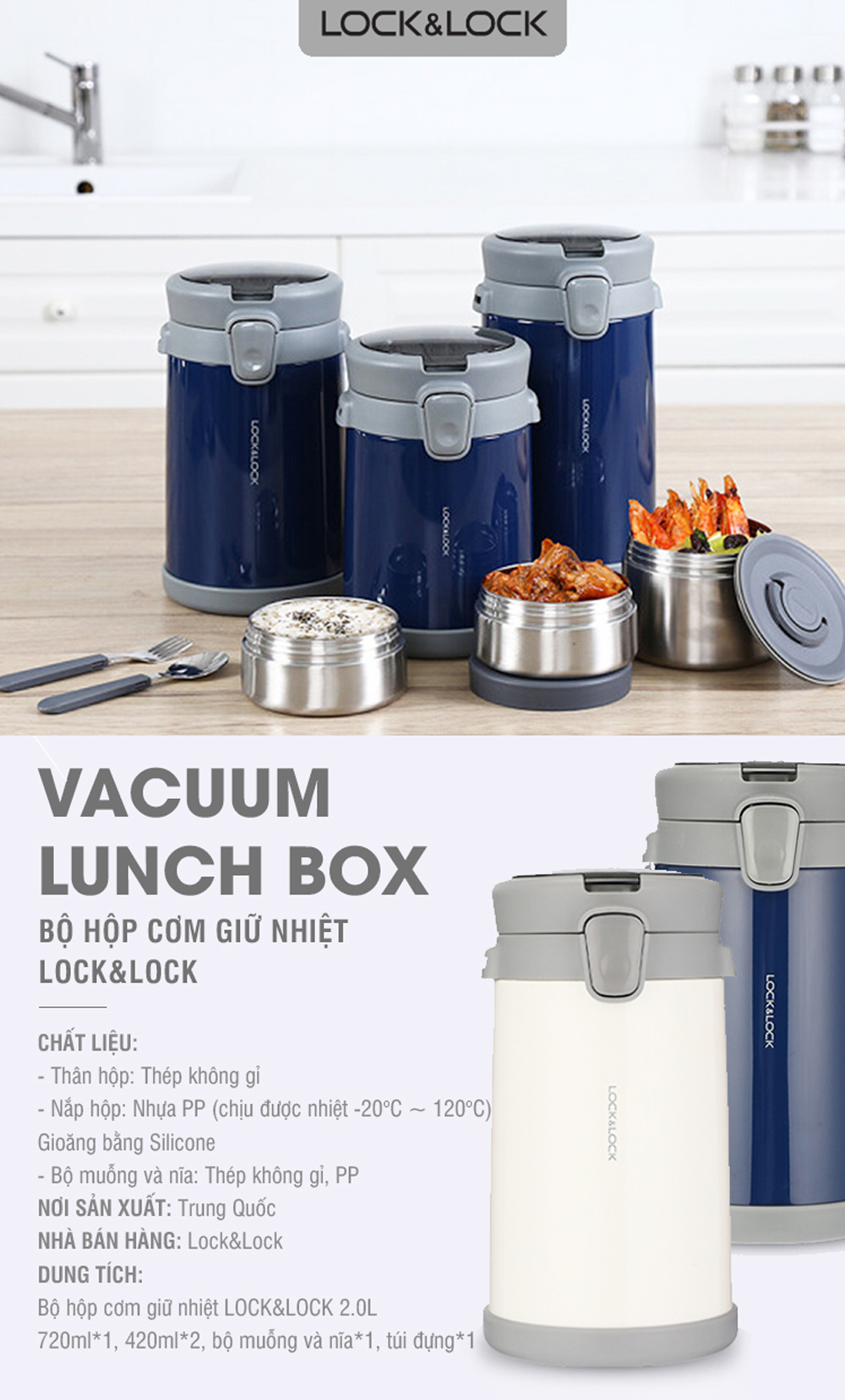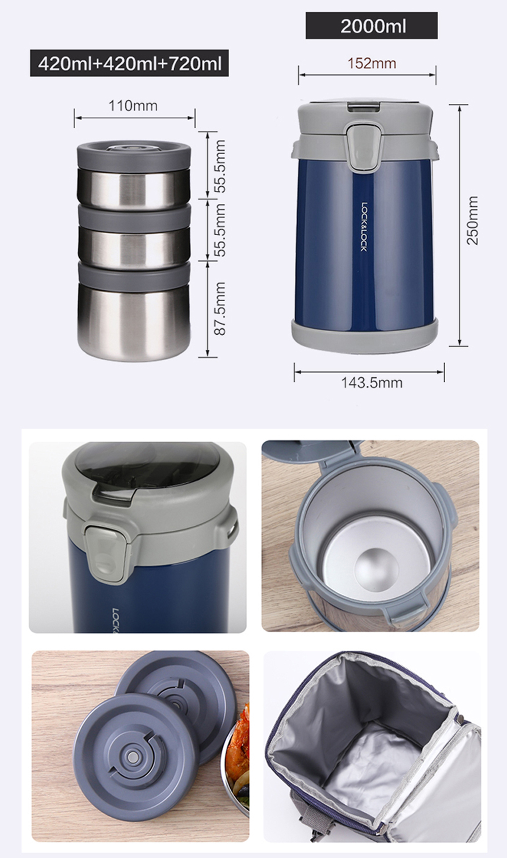 Bộ hộp cơm giữ nhiệt Lock&Lock Easy Carry 2L LHC8039 có túi (1 hộp 720ml, 2 hộp 420ml kèm 1 bộ muỗng nĩa) - JoyMall