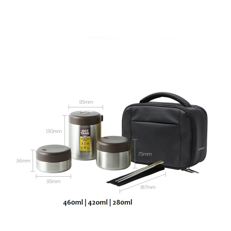Bộ hộp cơm giữ nhiệt LocknLock 1 Lít 2 LHC8032SLV, Hàng chính hãng, 3 hộp đựng, có túi, đi kèm muỗng đũa - JoyMall