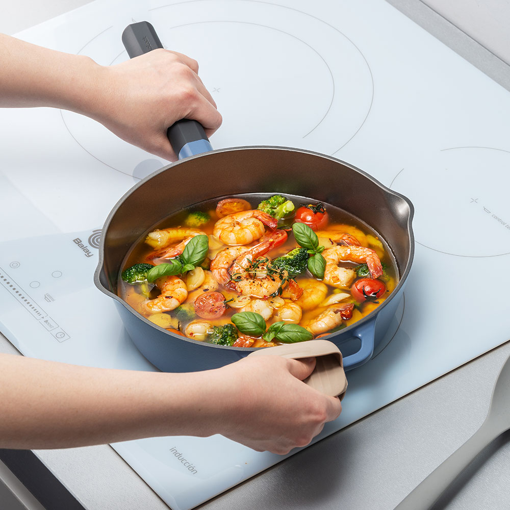3. Vì đây là dụng cụ nấu ăn, không phải dụng cụ bảo quản thức ăn, vui lòng lưu trữ đồ ăn trong hộp đựng thực phẩm để tránh làm mòn và hư hỏng lớp phủ chống dính.