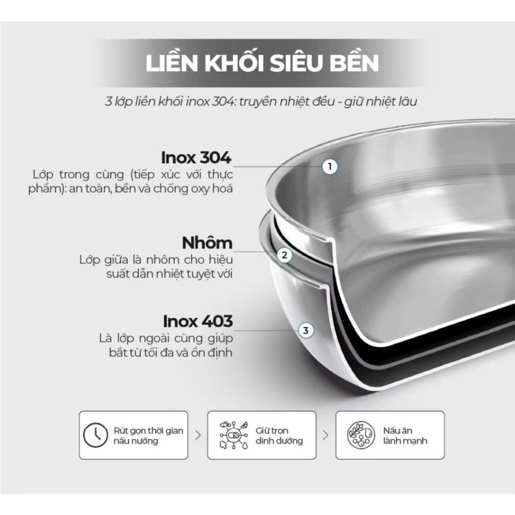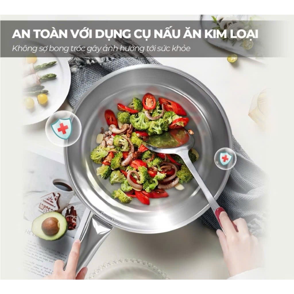 Chảo inox đa lớp SunhouseModel: IN20M7E - IN24M7E - IN26M7EChảo inox đa lớp Sunhouse đạt các tiêu chuẩn quốc tế về sứckhỏe và chất lượng. Chảo được thiết kế 3 lớp nguyên khối chắc chắn, bền bỉ, cónhiều kích cỡ khác nhau hỗ trợ người dùng chế biến đa dạng các món ăn và có thểsử dụng trên mọi loại bếp.