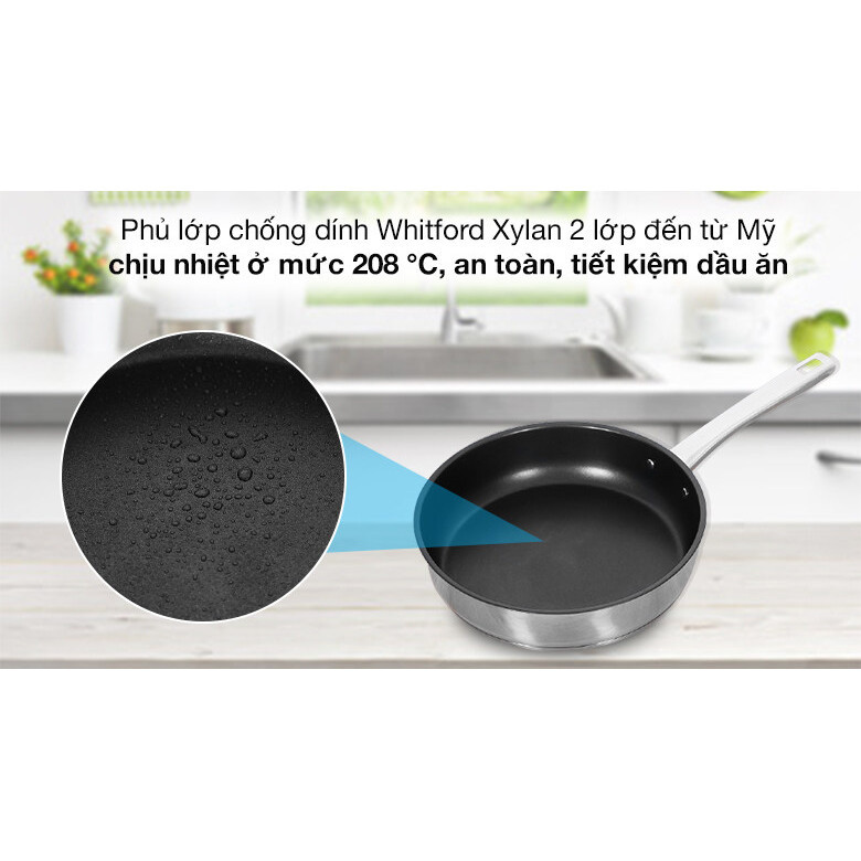 Cấu tạo đáy chảo gồm 3 lớp với chất liệu inox 430 bắt từ mạnh, truyền nhiệt nhanh và giữ nhiệt lâu