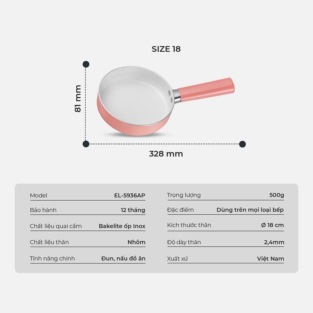 Chảo nhôm chống dính an toàn Elmich Baby EL EL-5935AP size 16cm, Hàng chính hãng, dùng cho mọi loại bếp - JoyMall