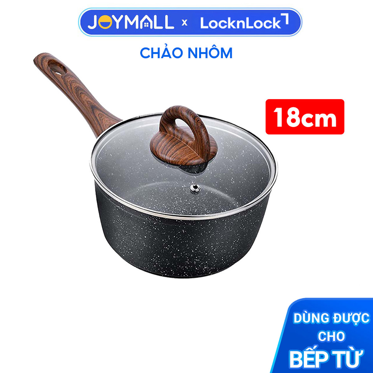 Chảo Nhôm Lock&Lock Sâu Lòng Chống Dính, Nắp Thủy Tinh LBU1181 18cm Dùng Được Trên Bếp Từ - Hàng Chính Hãng - JoyMall