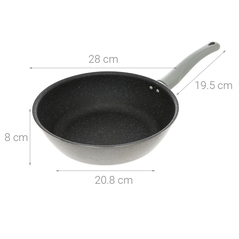 Đường kính 28 cm, lòng chảo sâu, chiên được 4 đùi gà cùng lúc.