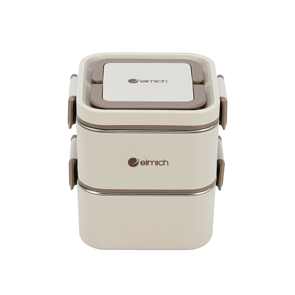 Hộp cơm 2 tầng inox 304 Elmich EL8381 1.3L, Hàng chính hãng,quai xách tiện lợi,kèm thìa nhựa-JoyMall