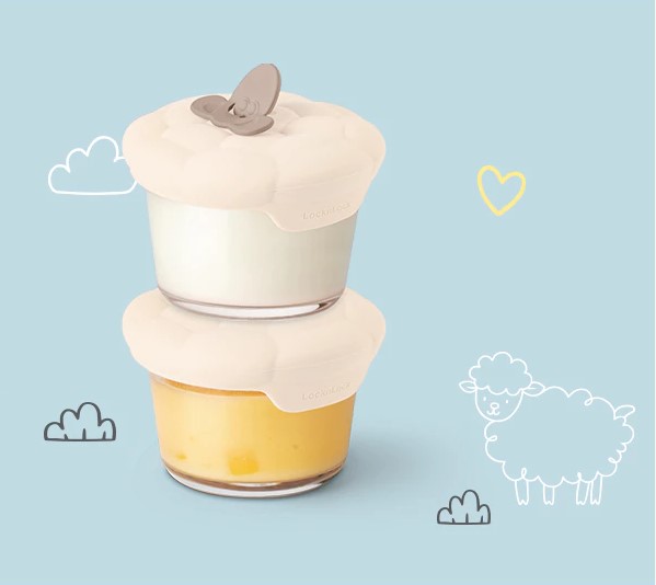 Hộp đựng thức ăn cho bé LocknLock LNG058S2IVY, Hàng chính hãng, 2 hộp 150ml, có vạch chia, nắp hình cừu - JoyMall