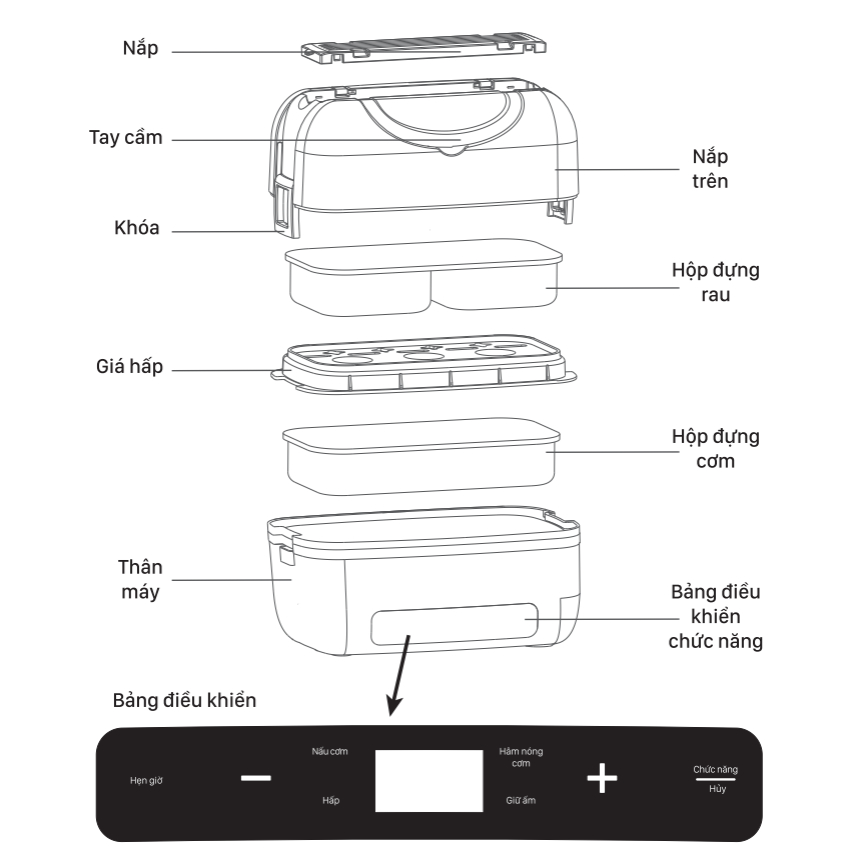 Hộp nấu và hâm nóng thức ăn MAGIC A-003 1.2L, Hàng chính hãng, tay cầm tiện lợi, bảng điều khiển đa năng - JoyMall