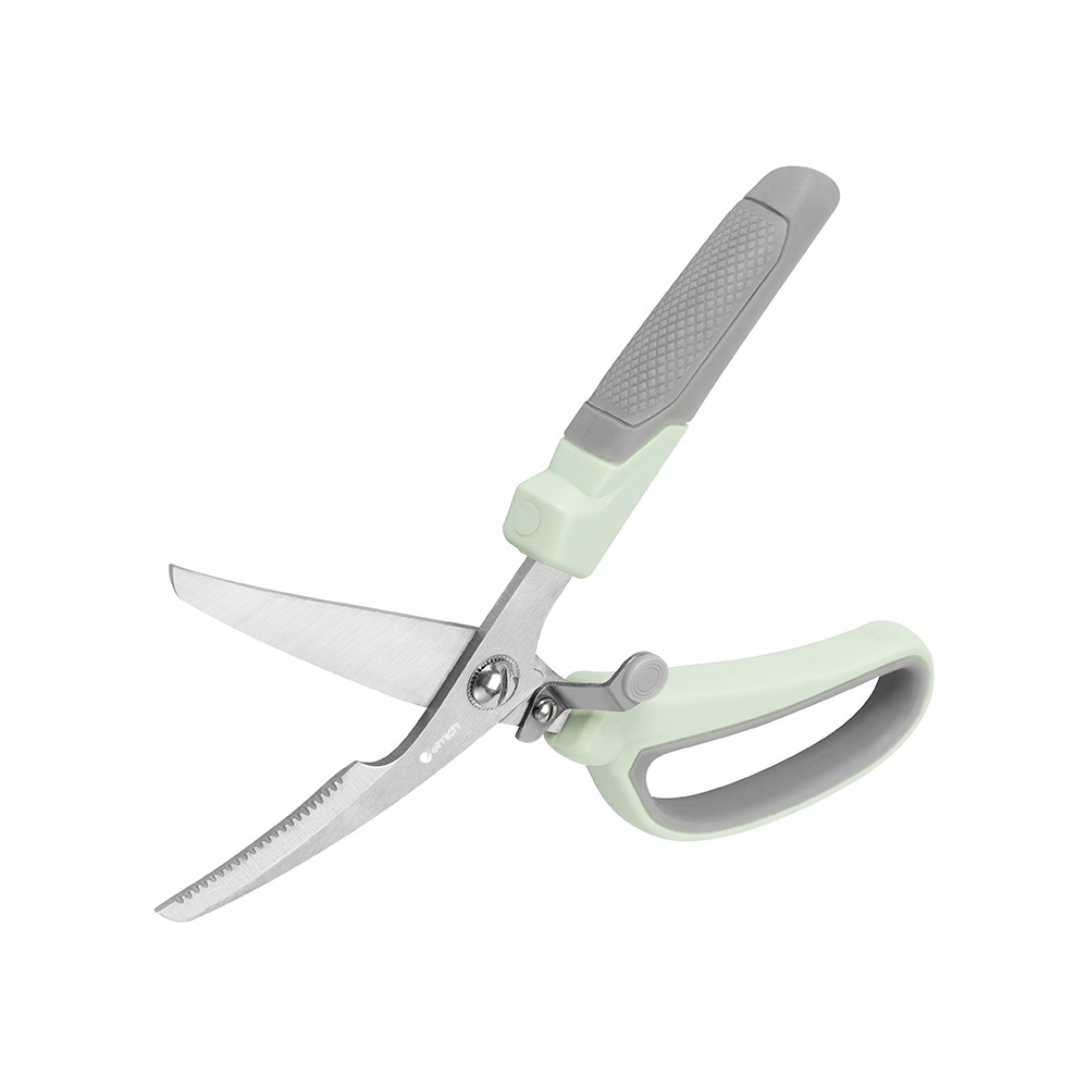 Kéo Cắt Gà Elmich EL0970, Hàng Chính Hãng, Inox 3Cr13 Không Gỉ, Chốt Khóa An Toàn - JoyMallThông tin sản phẩmChất liệu inox không gỉ 3Cr13: Lưỡi kéo được làm từ inox chất lượng cao, không gỉ sét, có độ bền và cứng cáp, giúp cắt thịt gà và thực phẩm dễ dàng mà không bị hao mòn hay biến dạng.Tay cầm bằng nhựa PP + TPR: Nhựa TPR (Thermoplastic Rubber) mềm mại, giúp tay cầm thoải mái, không bị trơn trượt trong quá trình sử dụng, mang lại cảm giác an toàn và dễ chịu khi cắt.Chốt khóa an toàn: Kéo có chốt khóa tay cầm, đảm bảo an toàn khi không sử dụng và dễ dàng cất gọn. Chốt khóa này giúp lưỡi kéo không mở ra ngoài ý muốn, tránh nguy cơ gây chấn thương.Thiết kế chuyên dụng cho việc cắt gà: Kéo có cấu trúc mạnh mẽ với lưỡi dày và cứng, phù hợp để cắt thịt gà, xương gà hoặc các loại thực phẩm khác mà không cần nhiều lực.Tiện lợi và an toàn: Thiết kế thân thiện với người dùng, giúp cắt thịt gà nhanh chóng và an toàn trong quá trình chế biến thực phẩm.