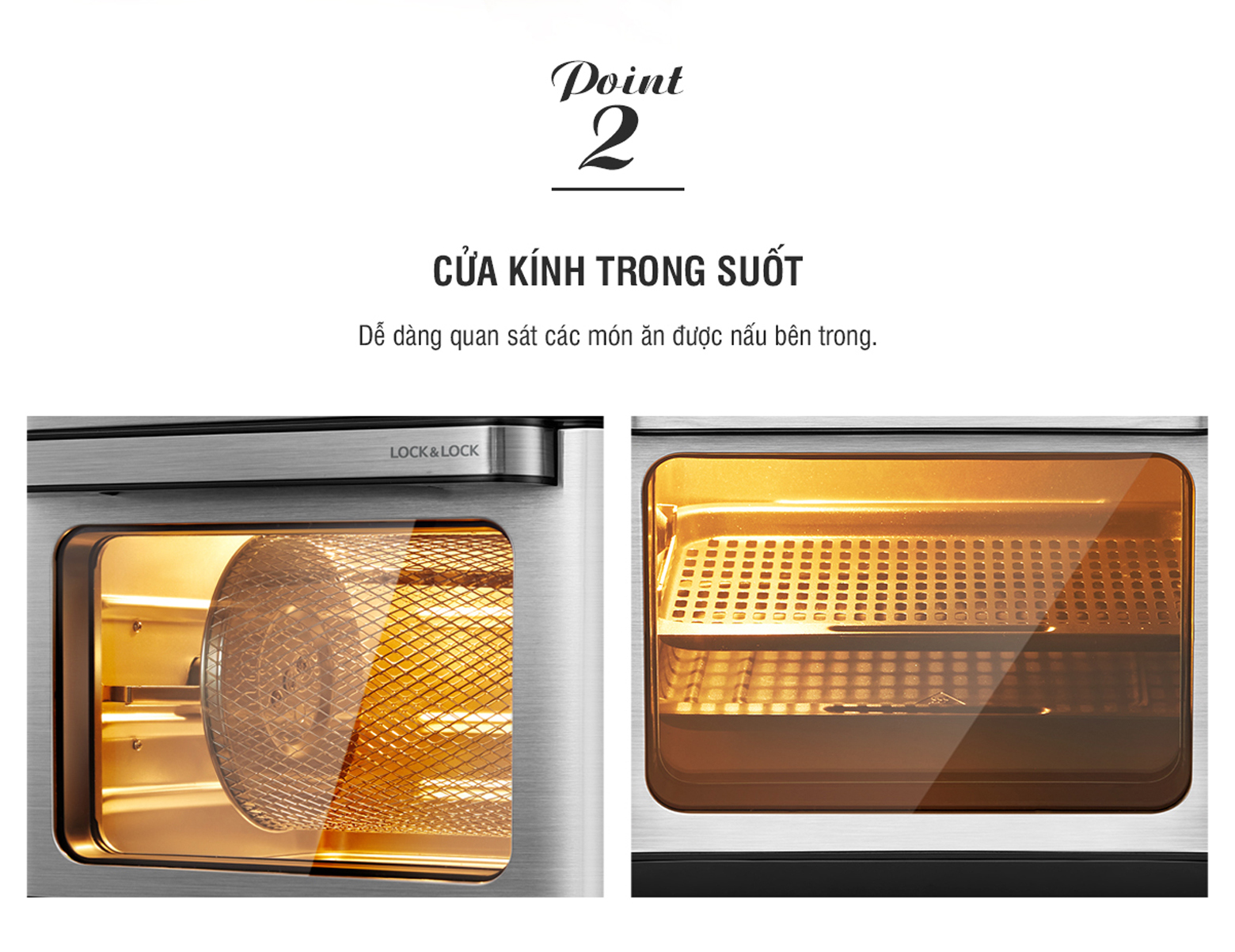 - Cửa kính trong suốt dễ dàng quan sát các món ăn được nấu bên trong