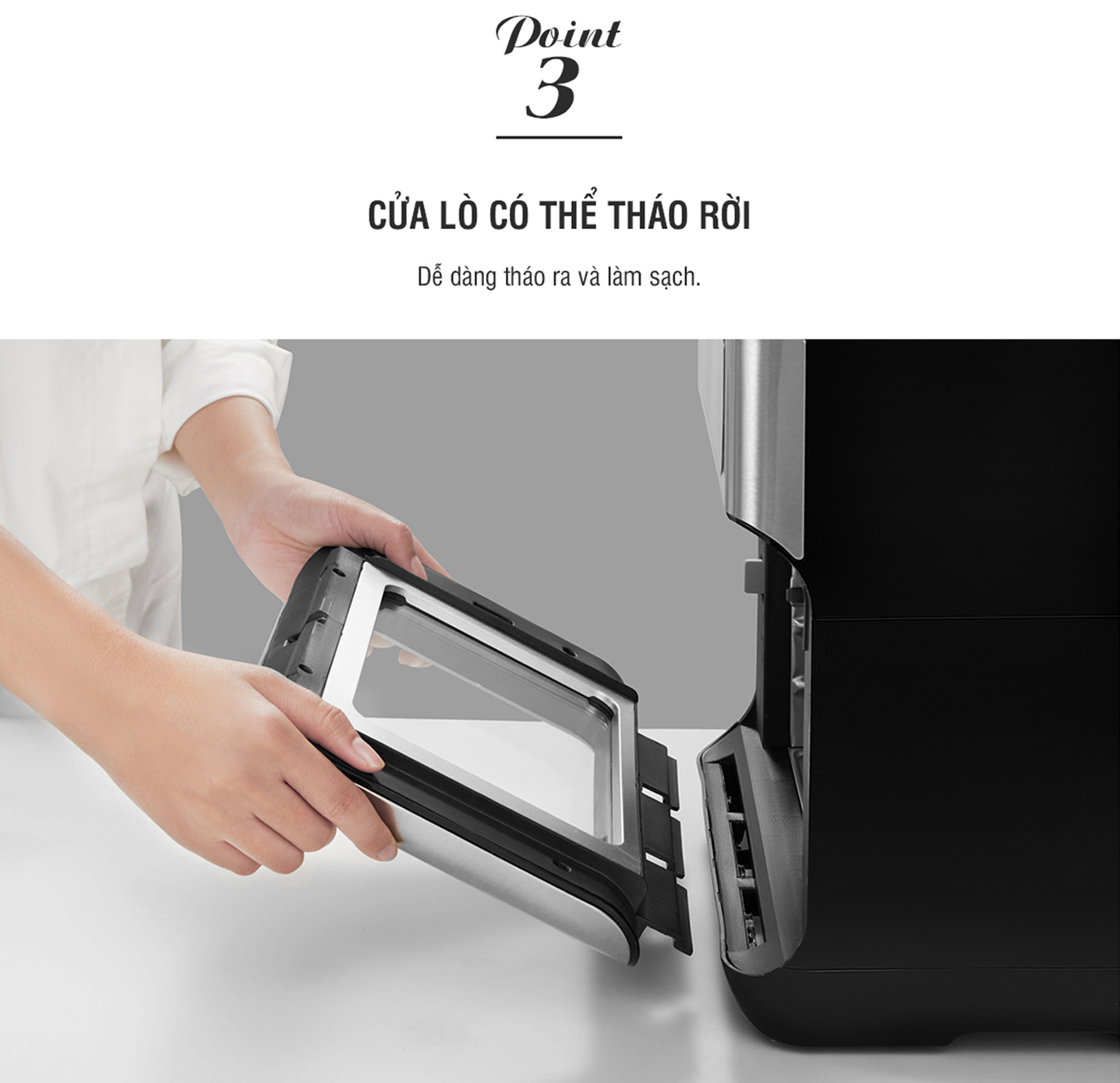 - Cửa lò có thể tháo rời dễ dàng tháo ra và làm sạch