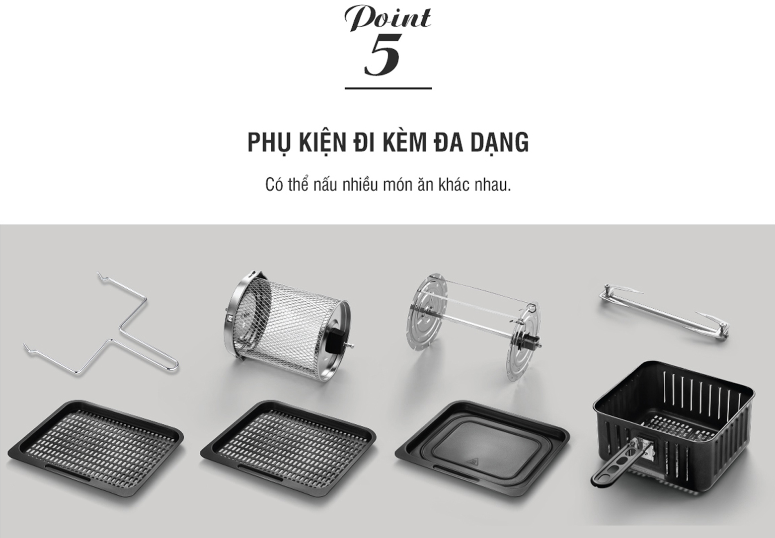 - Phụ kiện đi kèm đa dạng có thể nấu nhiều món ăn khác nhau