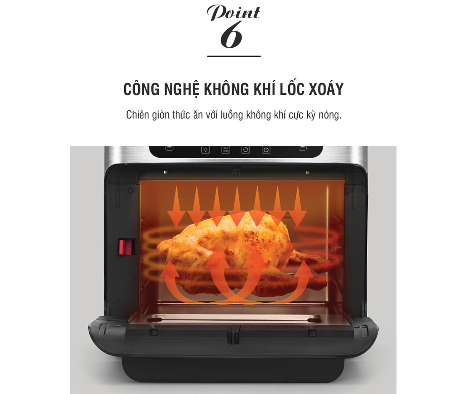 - Công nghệ không khí lốc xoáy chiên giòn thức ăn với luồng không khí cực kỳ nóng