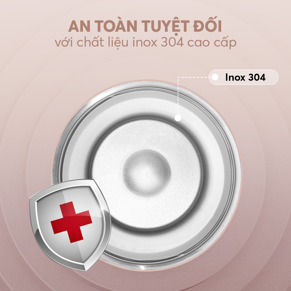 2. An toàn tuyệt đối cho sức khỏe: Chất liệu inox 304 cao cấp, không thôi nhiễm chất độc hại, đảm bảo chất lượng nước uống của bạn trong suốt ngày dài.