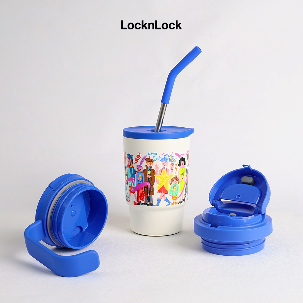 Ly giữ nhiệt LocknLock Vacuum Tumbler LHC3340BLU_TL 400ml, Hàng chính hãng, 3 nắp đậy, có ống hút - JoyMall