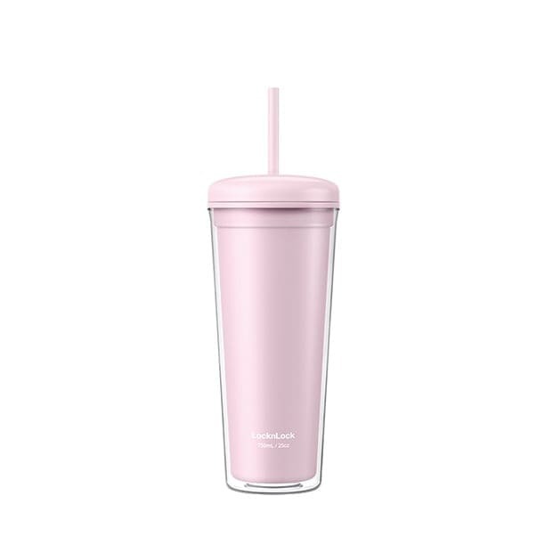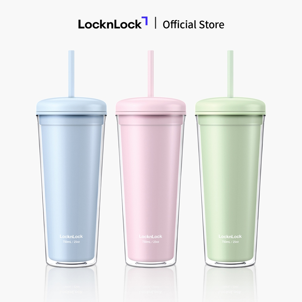 Ly Nhựa 2 Lớp LocknLock Kèm Ống Hút Macaron Double Wall 750ml HAP533, Hàng Chính Hãng - JoyMall