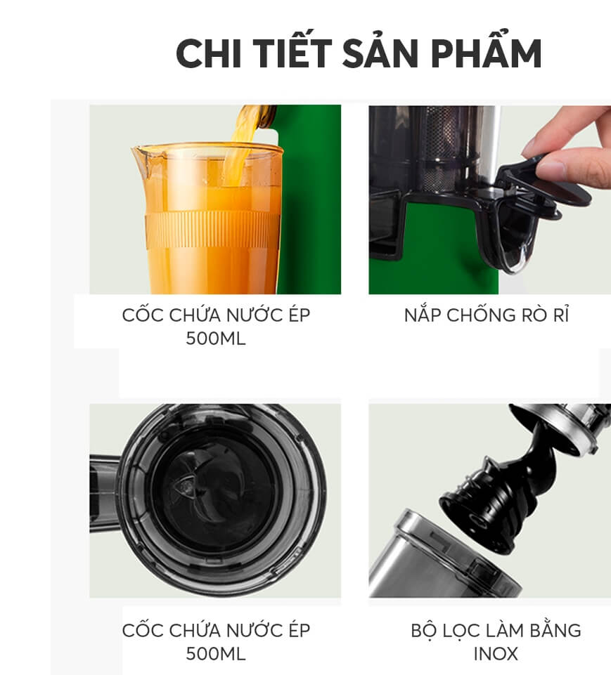 Trục ép được chế tạo từ chất liệu nhựa PP, không chứa BPA nên bạn hoàn toàn có thể yên tâm về chỉ sổ an toàn thực phẩm.