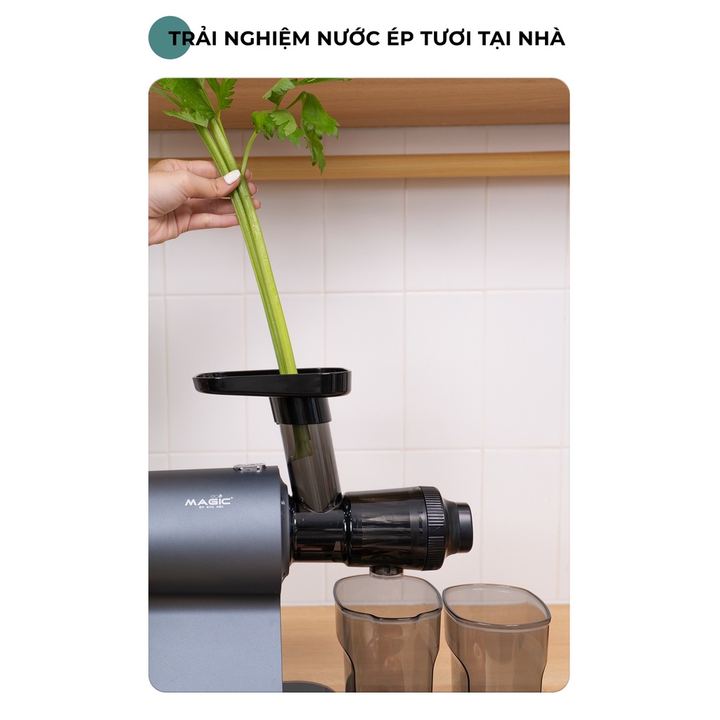 Máy Ép Chậm Trục Ngang MAGIC Eco AC-142 là phiên bản mới nhất của dòng sản phẩm Máy Ép Chậm. Với thiết kế mới tinh tế, đường nét tinh xảo cùng tone màu xám đen nhám sang trọng mang đến sự tươi mới cho căn bếp nhà bạn. Cũng như trở thành người bạn đồng hành cùng bạn tạo ra những ly nước ép tươi giàu vitamin mỗi ngày.