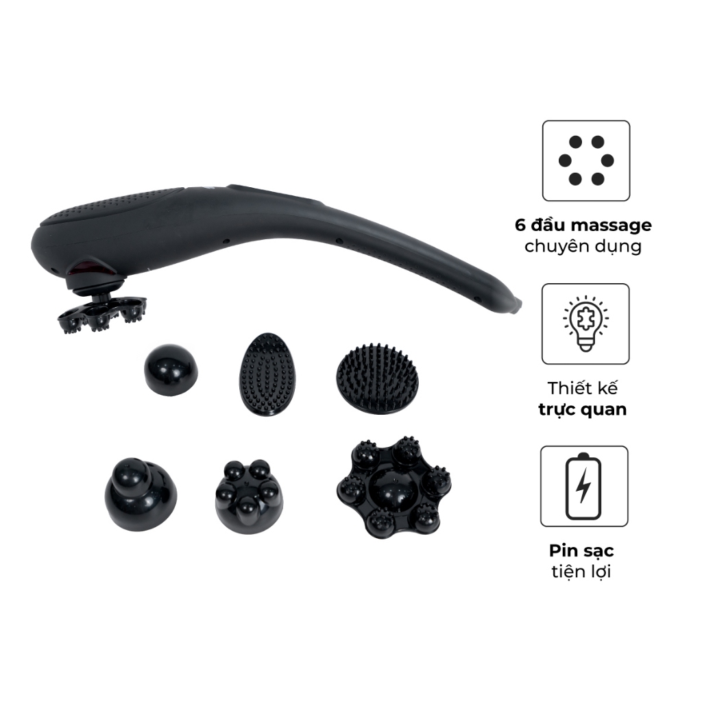 Máy massage cầm tay BUHEUNG MK-301, Hàng chính hãng, 6 đầu massage, pin sạc tiện lợi - JoyMall