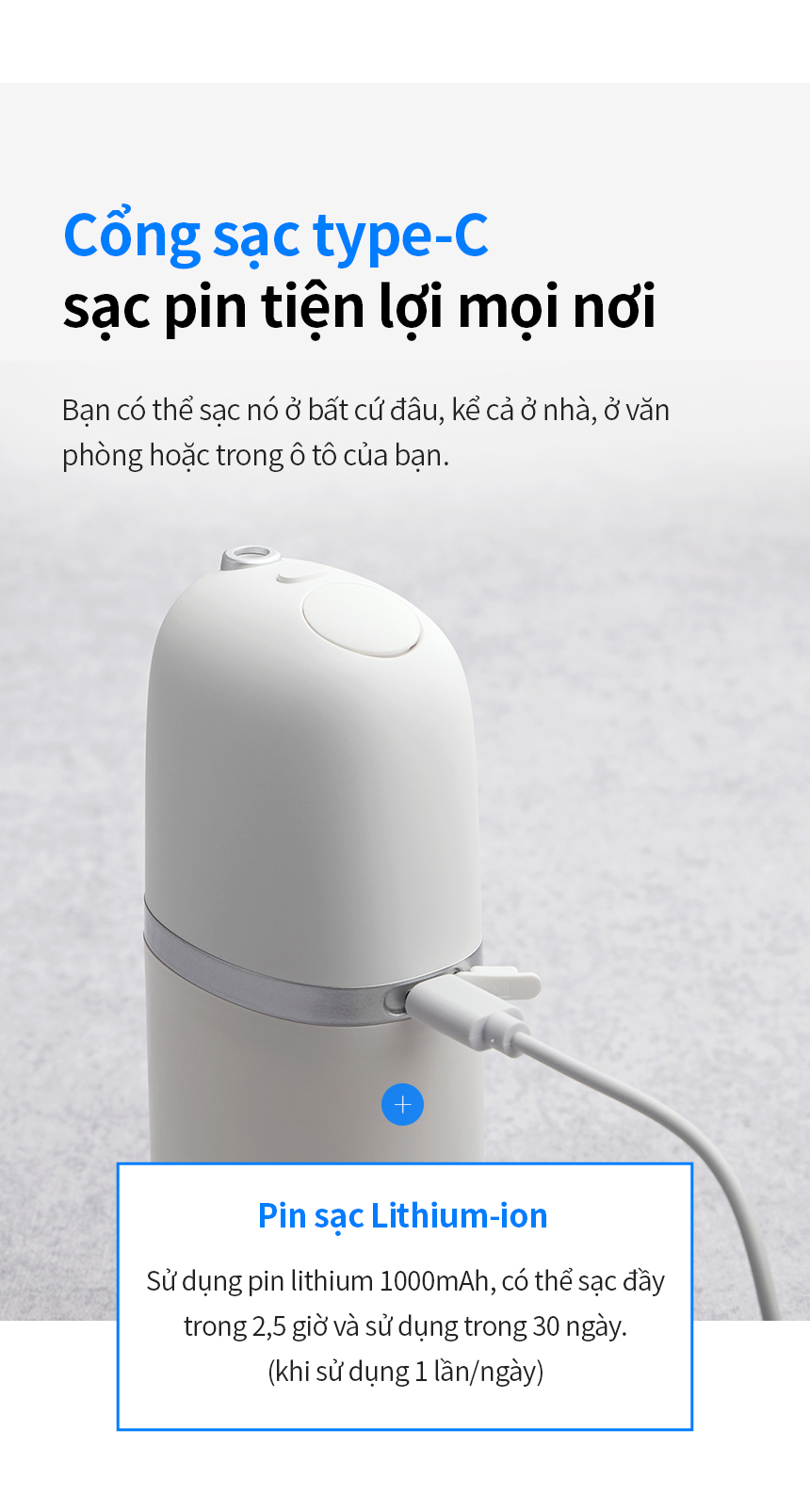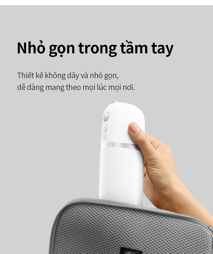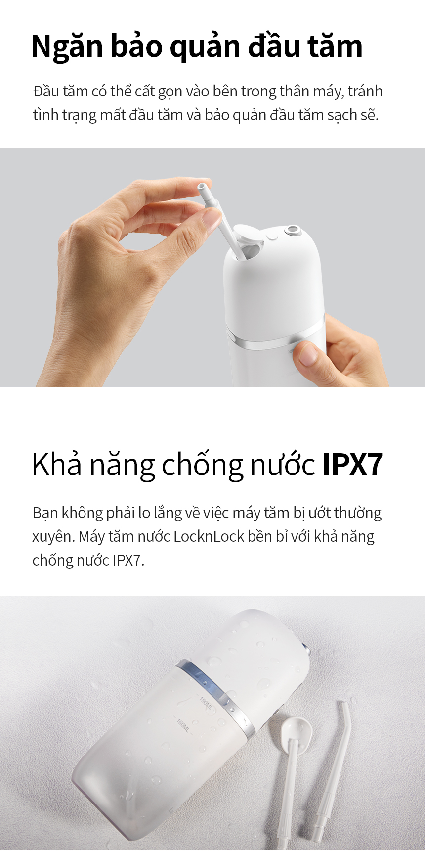- Bên cạnh đó, đầu tăm có thể được cất gọn và bảo quản sạch sẽ bên trong thân máy, tránh được tình trạng mất đầu tăm.