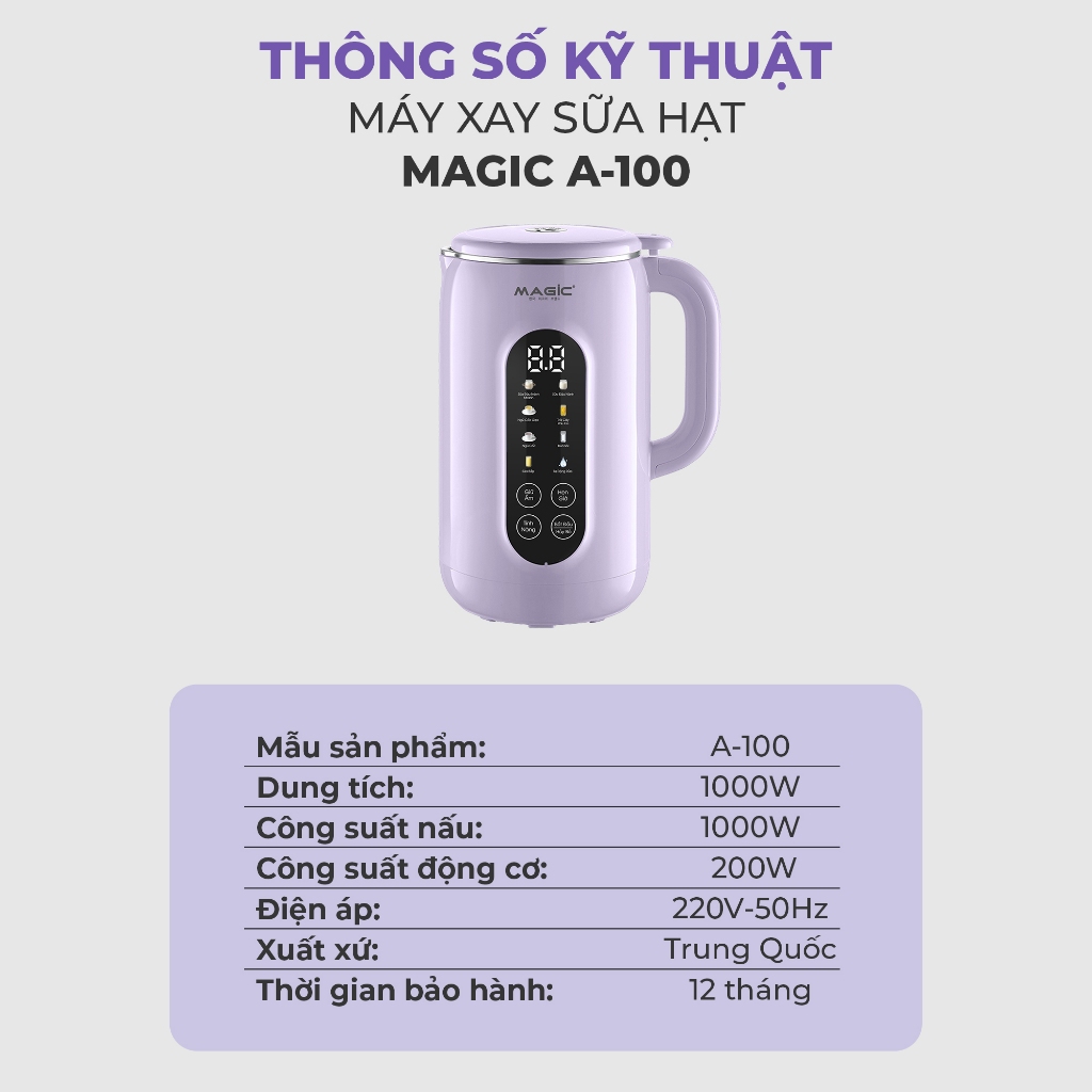 Máy xay nấu sữa hạt đa năng MAGIC A-100 1200ml, Hàng chính hãng, lưỡi dao 8 cánh đa chiều - JoyMall