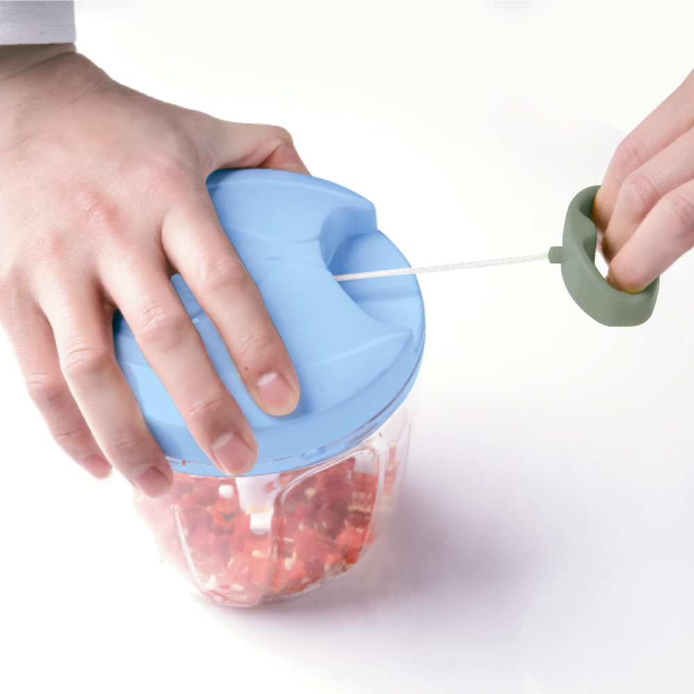 - Giữ nắp bằng một tay và nhẹ nhàng kéo bằng tay còn lại để băm thực phẩm