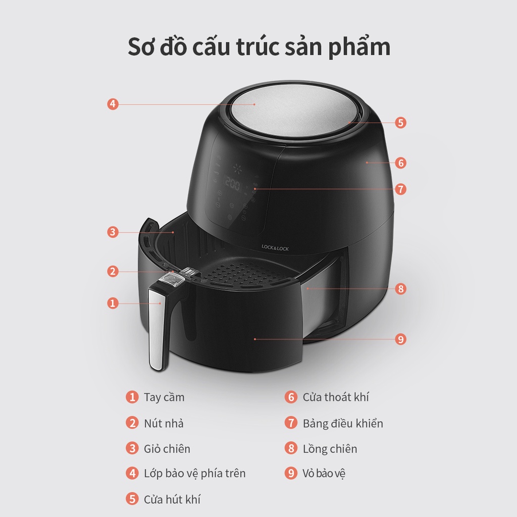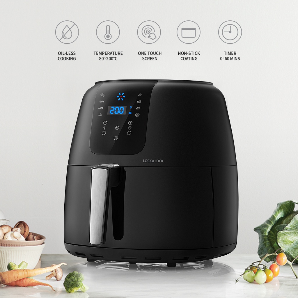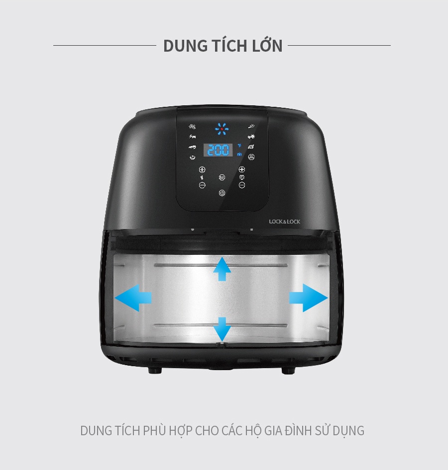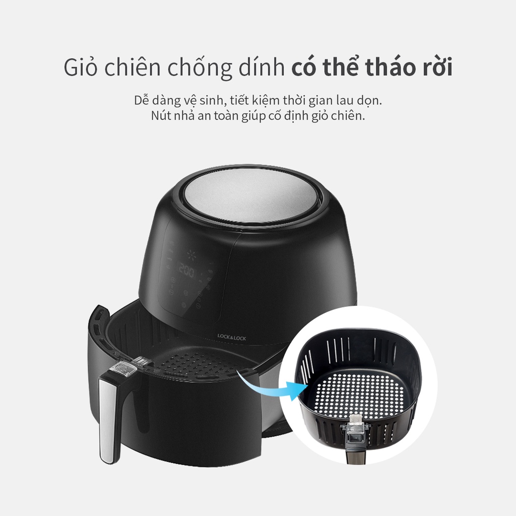 Nồi Chiên Không Dầu Lock&Lock EJF296BLK 7.2L - Hàng Chính Hãng, Bảo Hành 24 Tháng Tặng Kèm Chảo Nướng - JoyMall